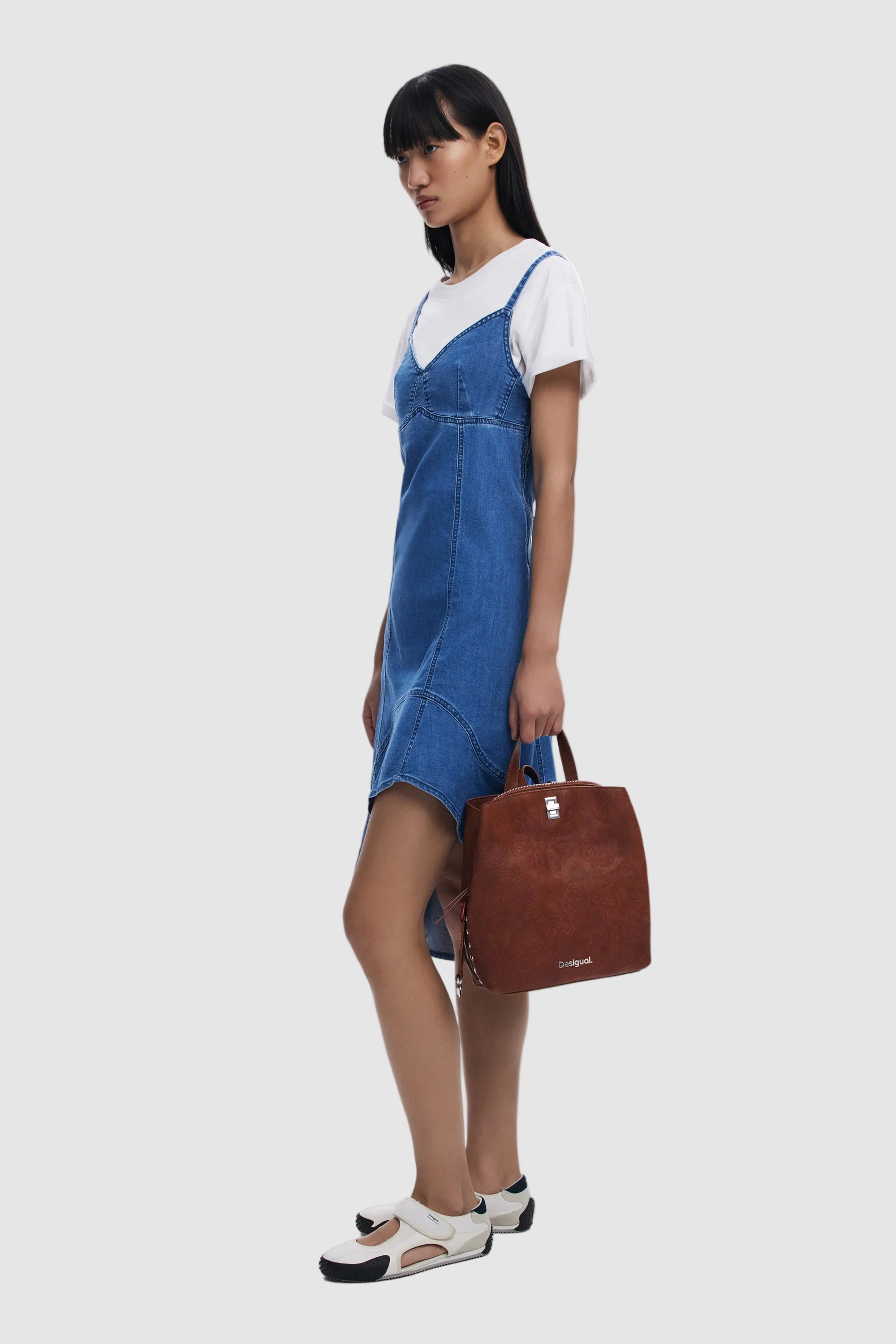 Rucsac damă Desigual structurat din piele ecologică caramel