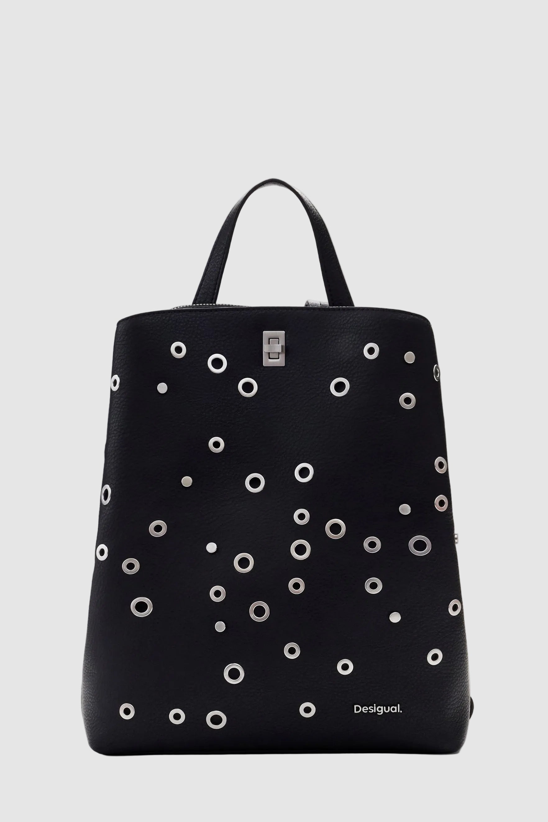 Rucsac damă Desigual din poliuretan cu detalii minimaliste negru