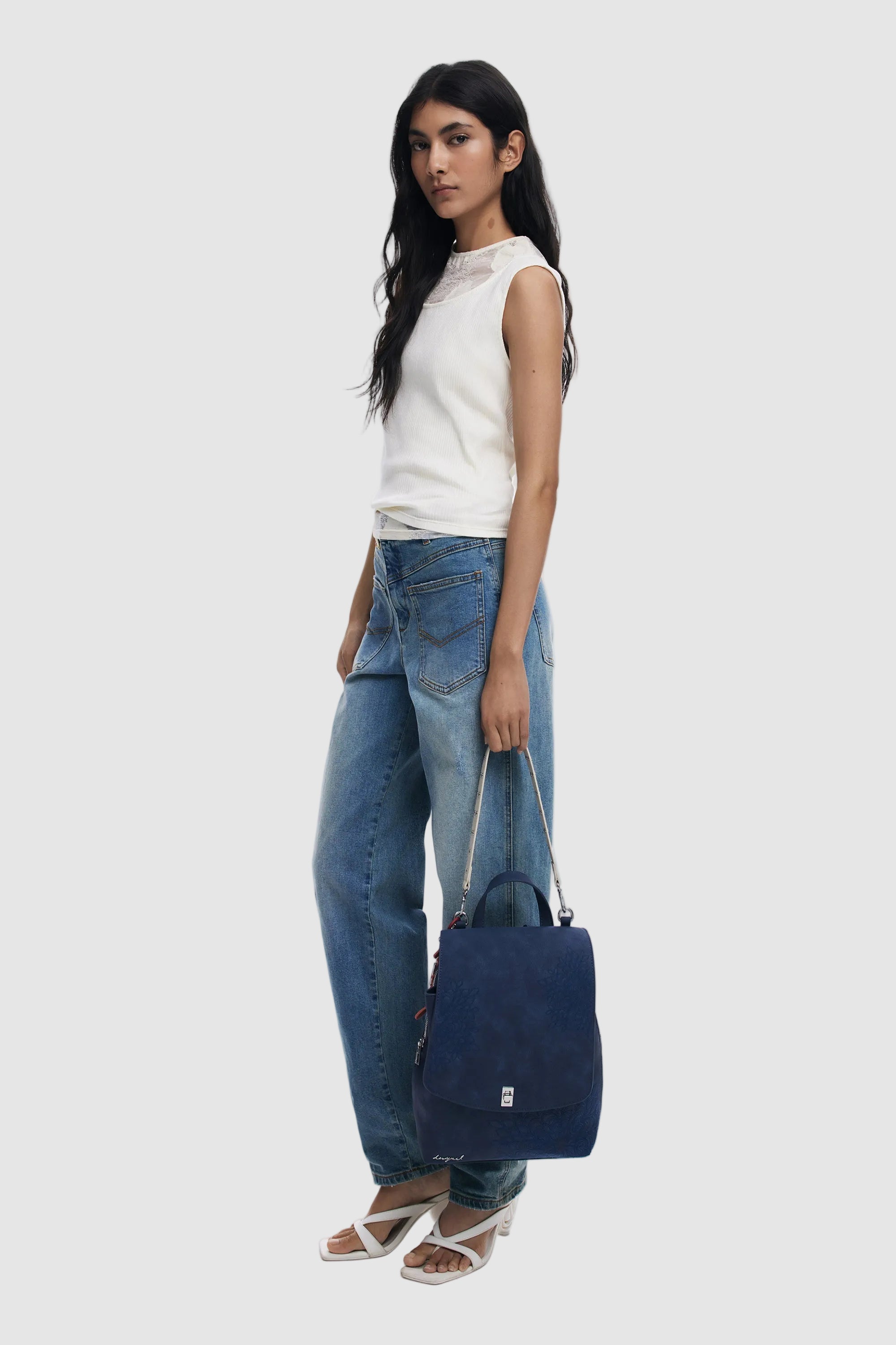 Rucsac damă Desigual din piele ecologică cu finisaj texturat albastru