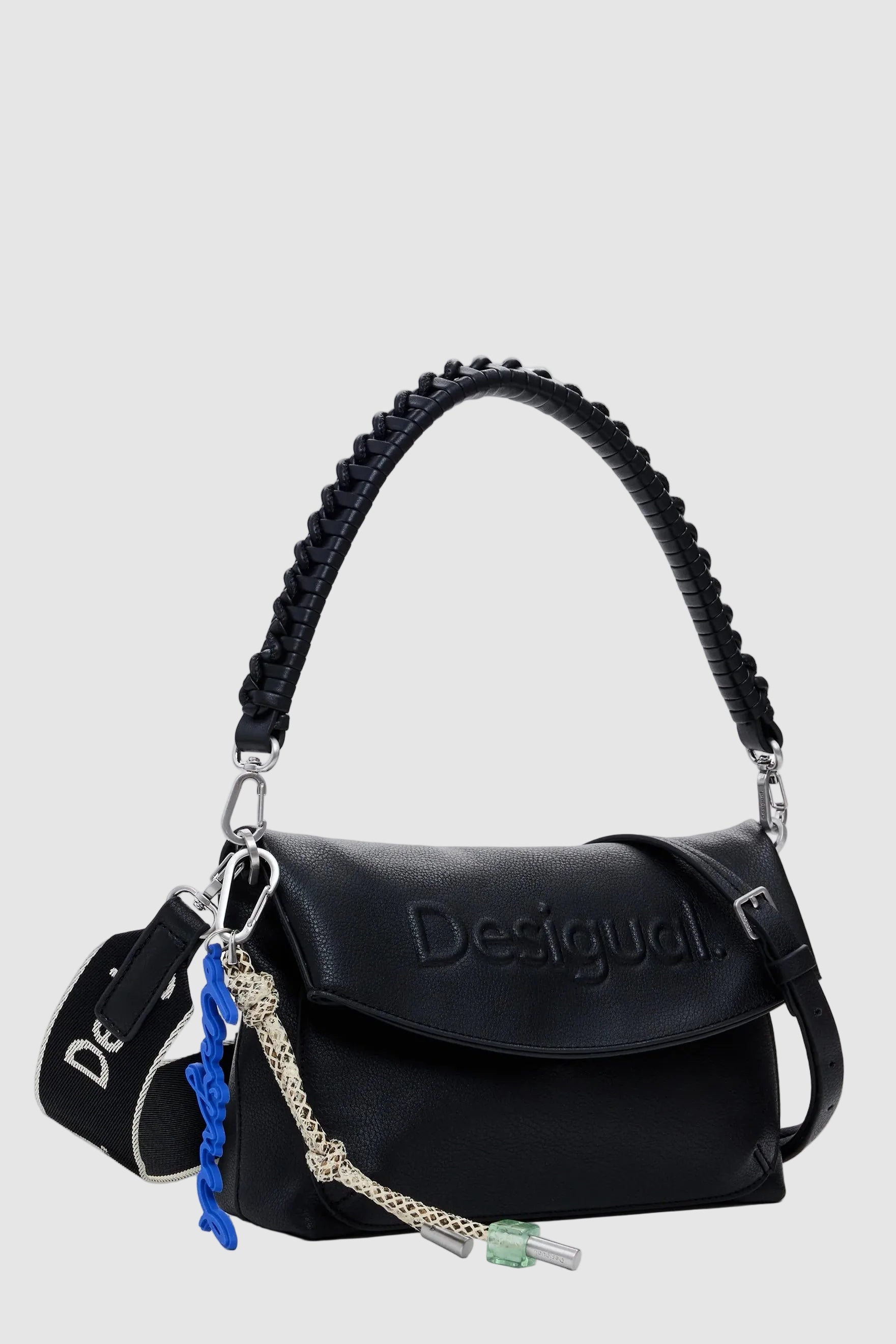 Poșetă damă Desigual structurată cu finisaj texturat negru