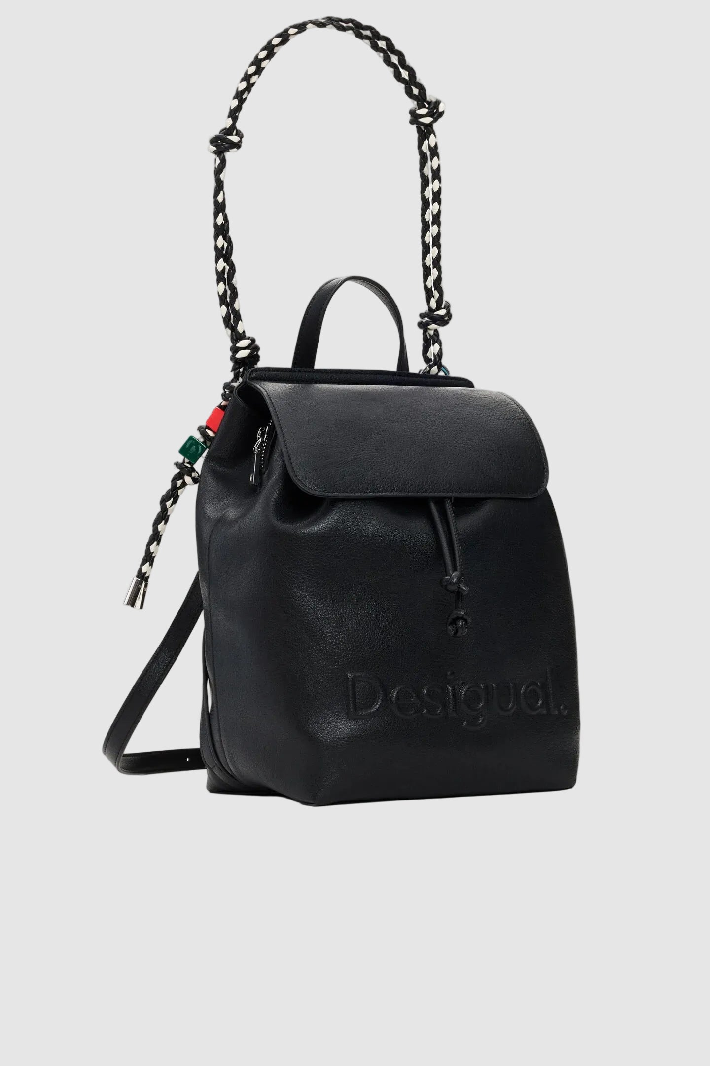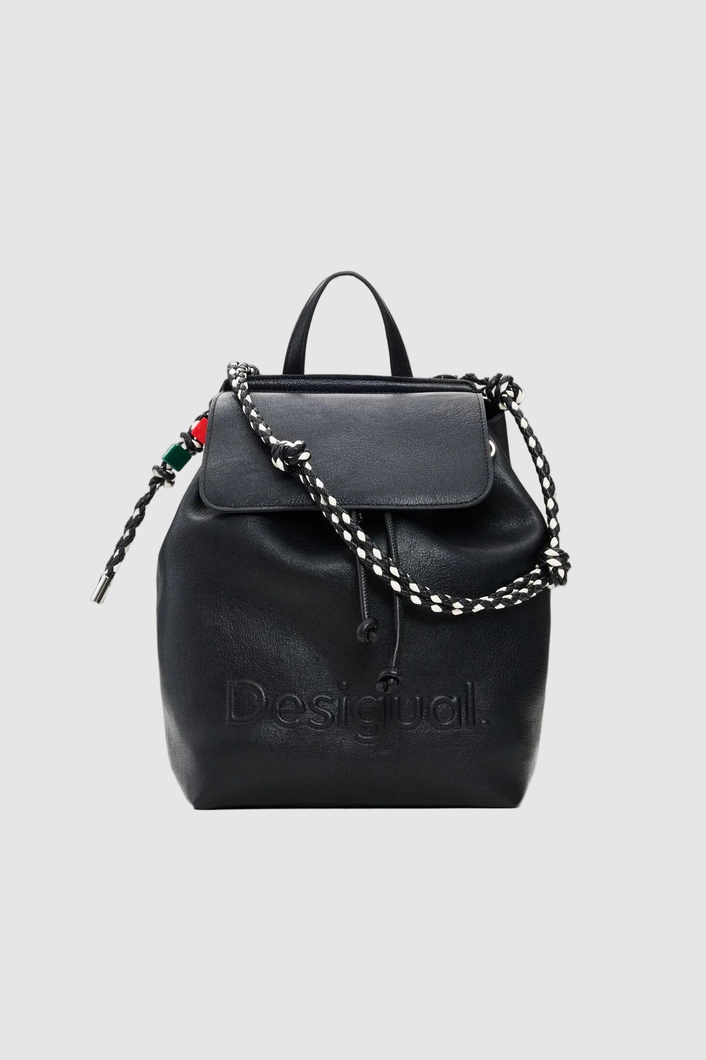 Rucsac femei Desigual negru cu logo embosat și șnur