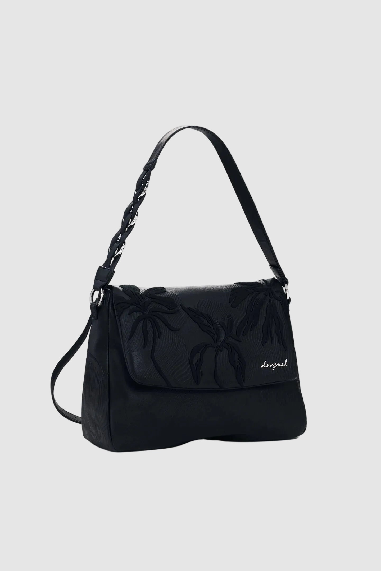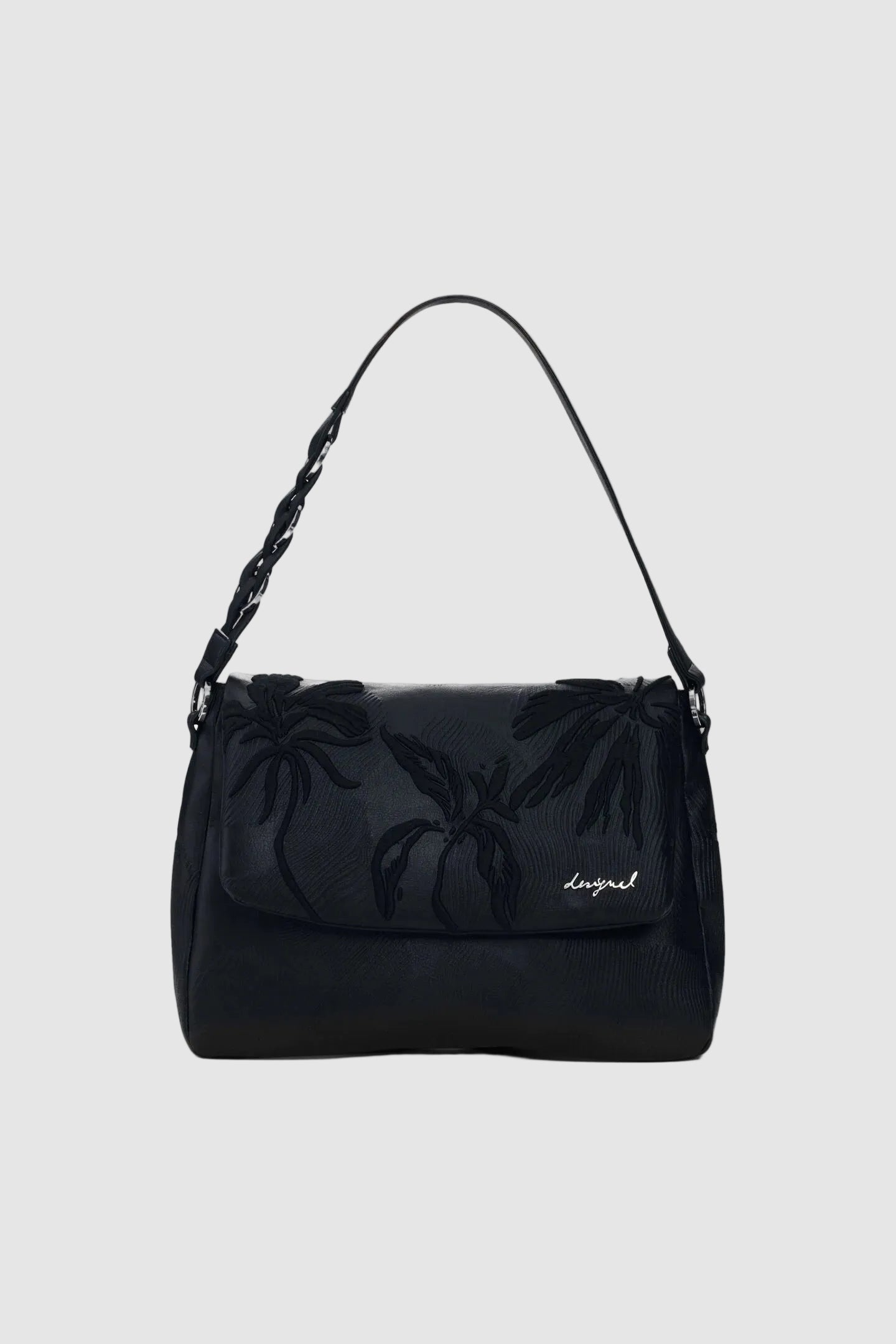 Geantă umăr femei Desigual neagră cu imprimeu floral reliefat