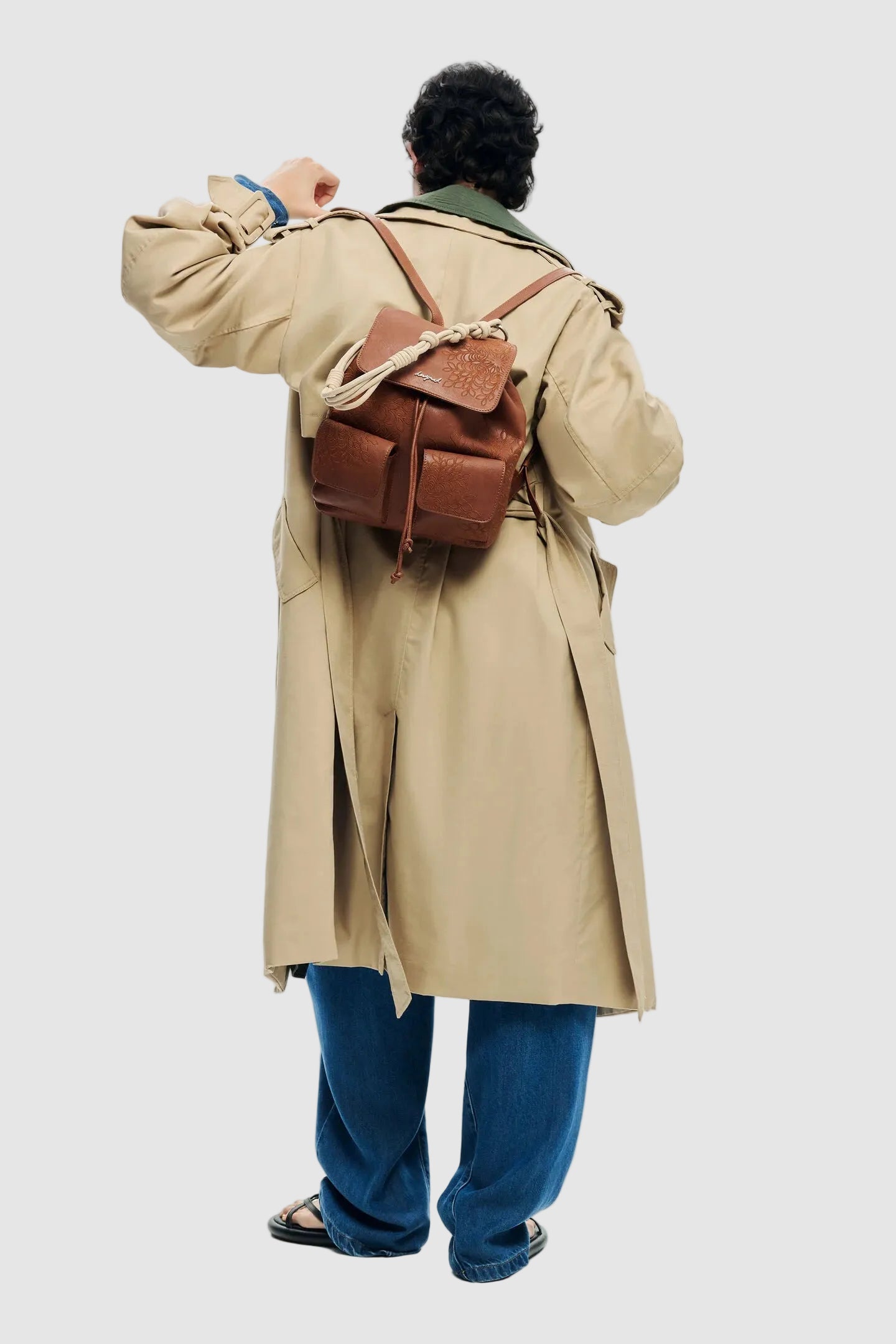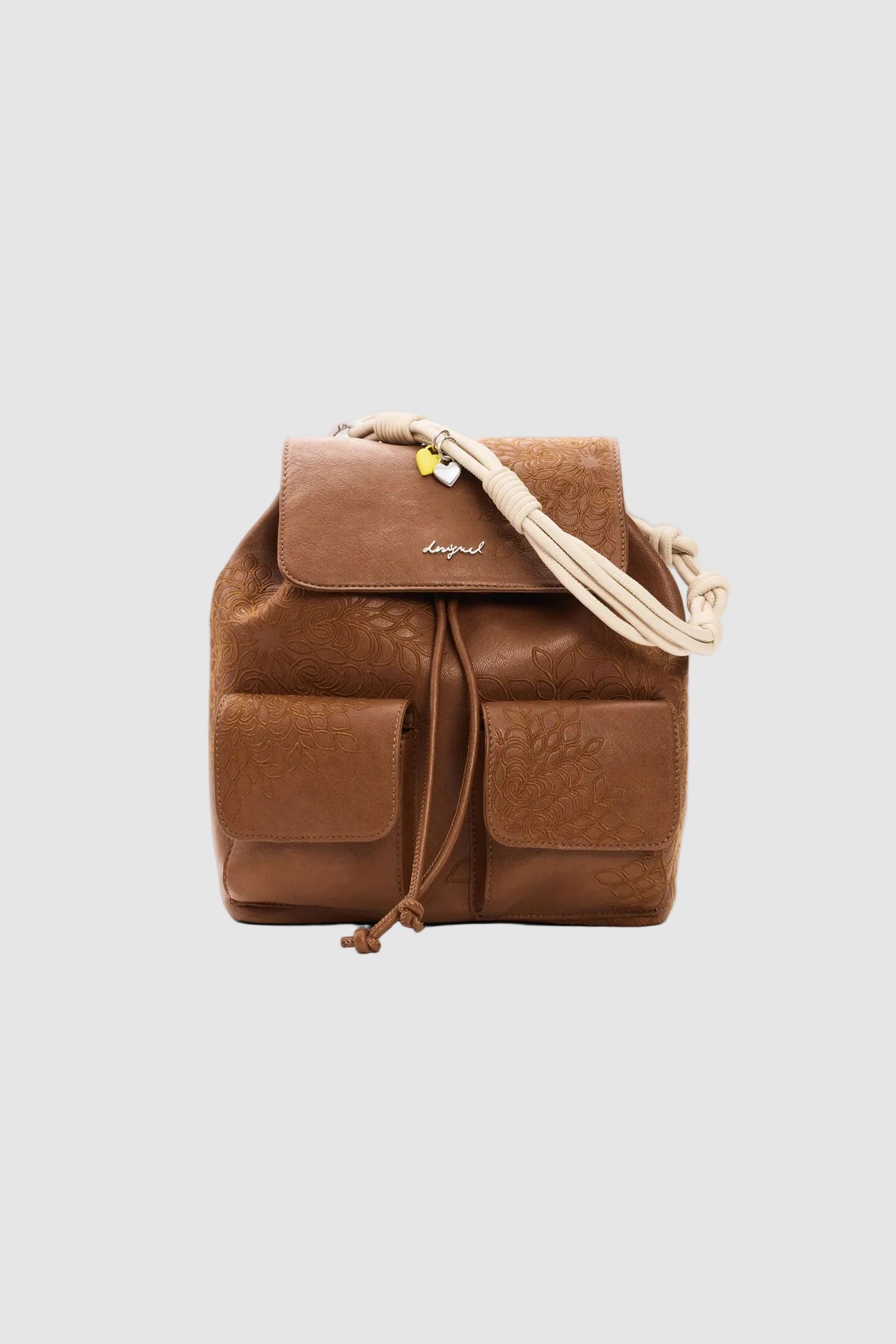 Rucsac femei Desigual caramel cu emboss floral și buzunare