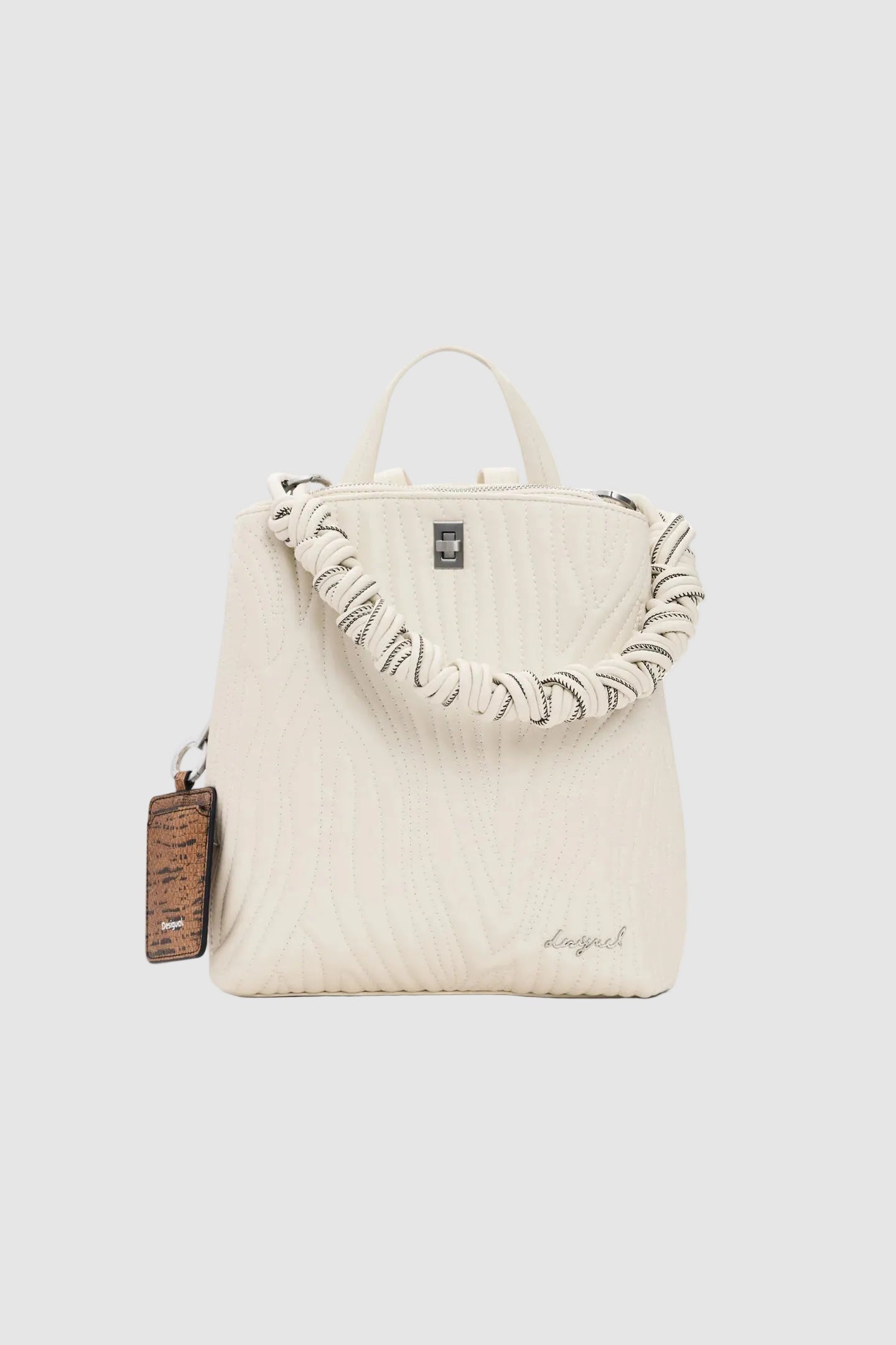 Rucsac tote femei Desigual crem texturată cu mâner împletit