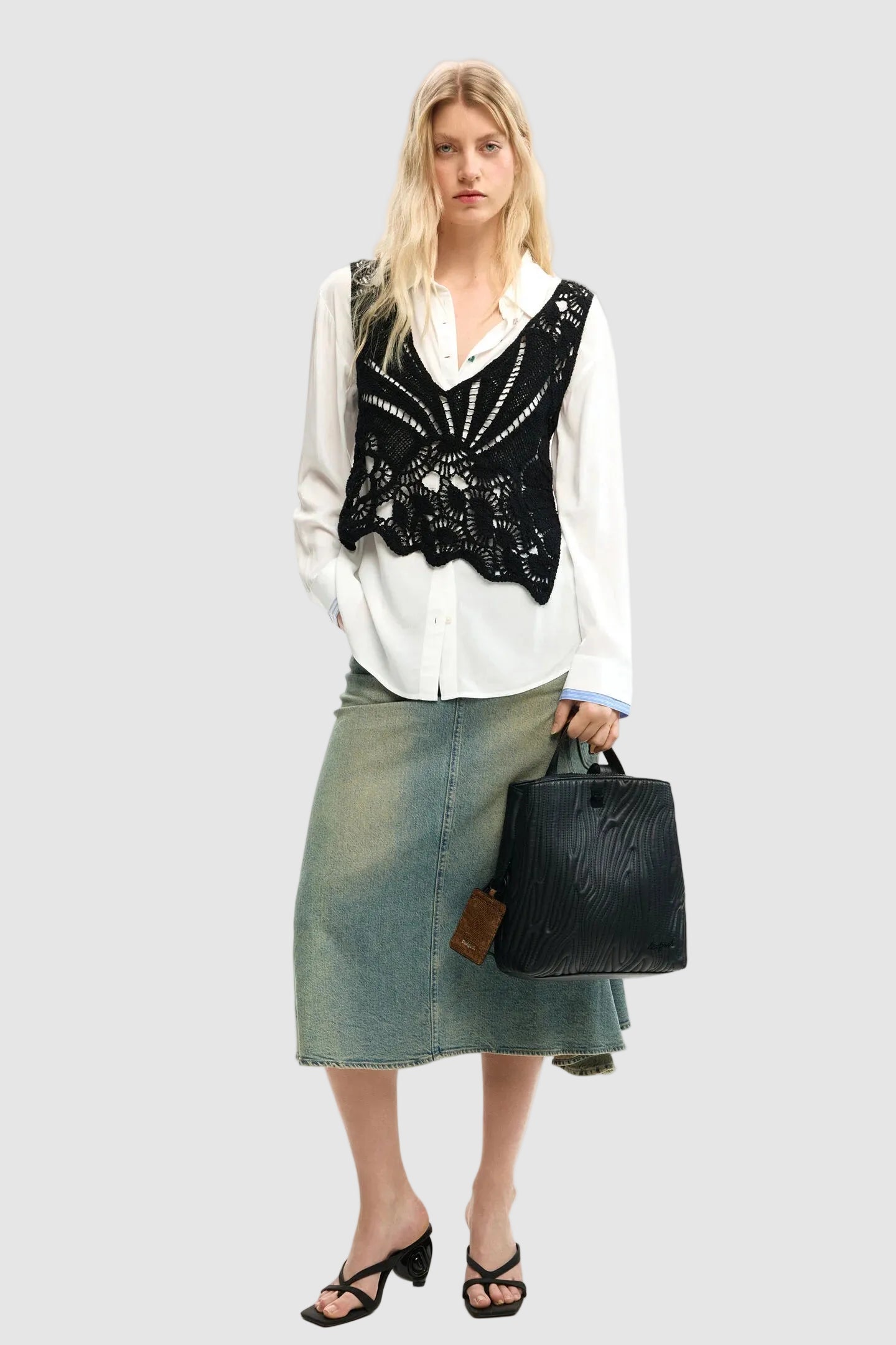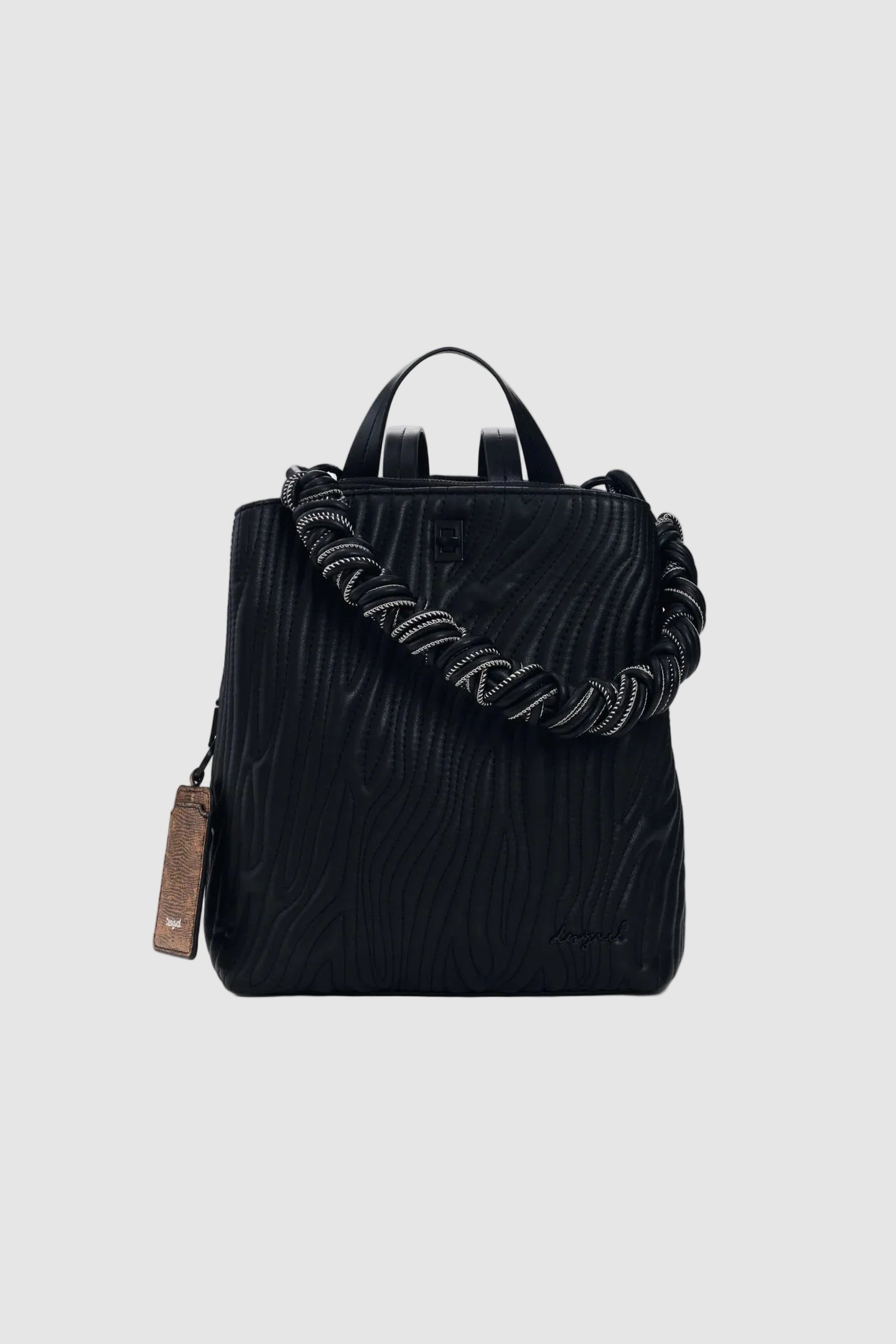 Rucsac tote femei Desigual neagră texturată cu mâner împletit
