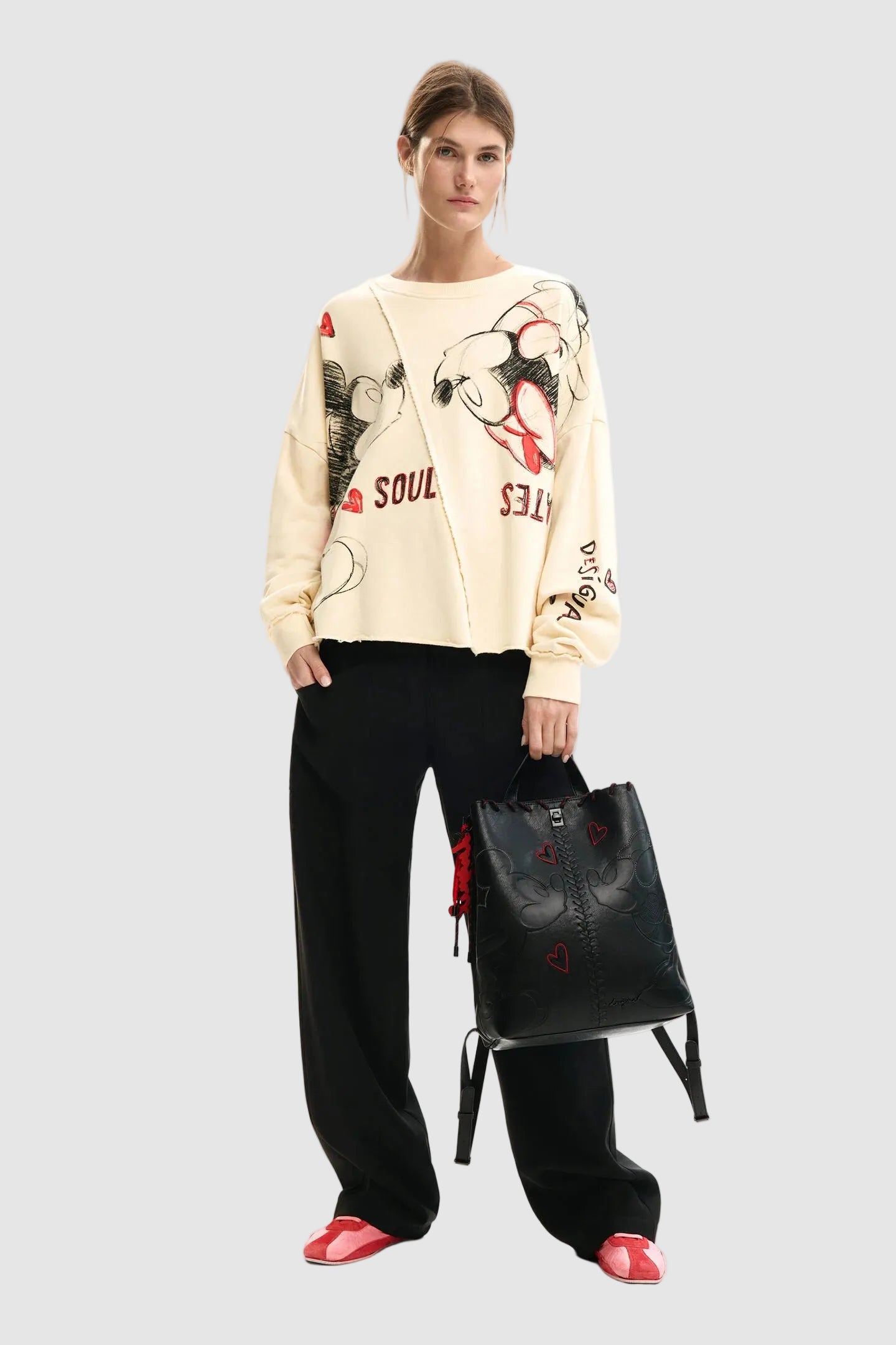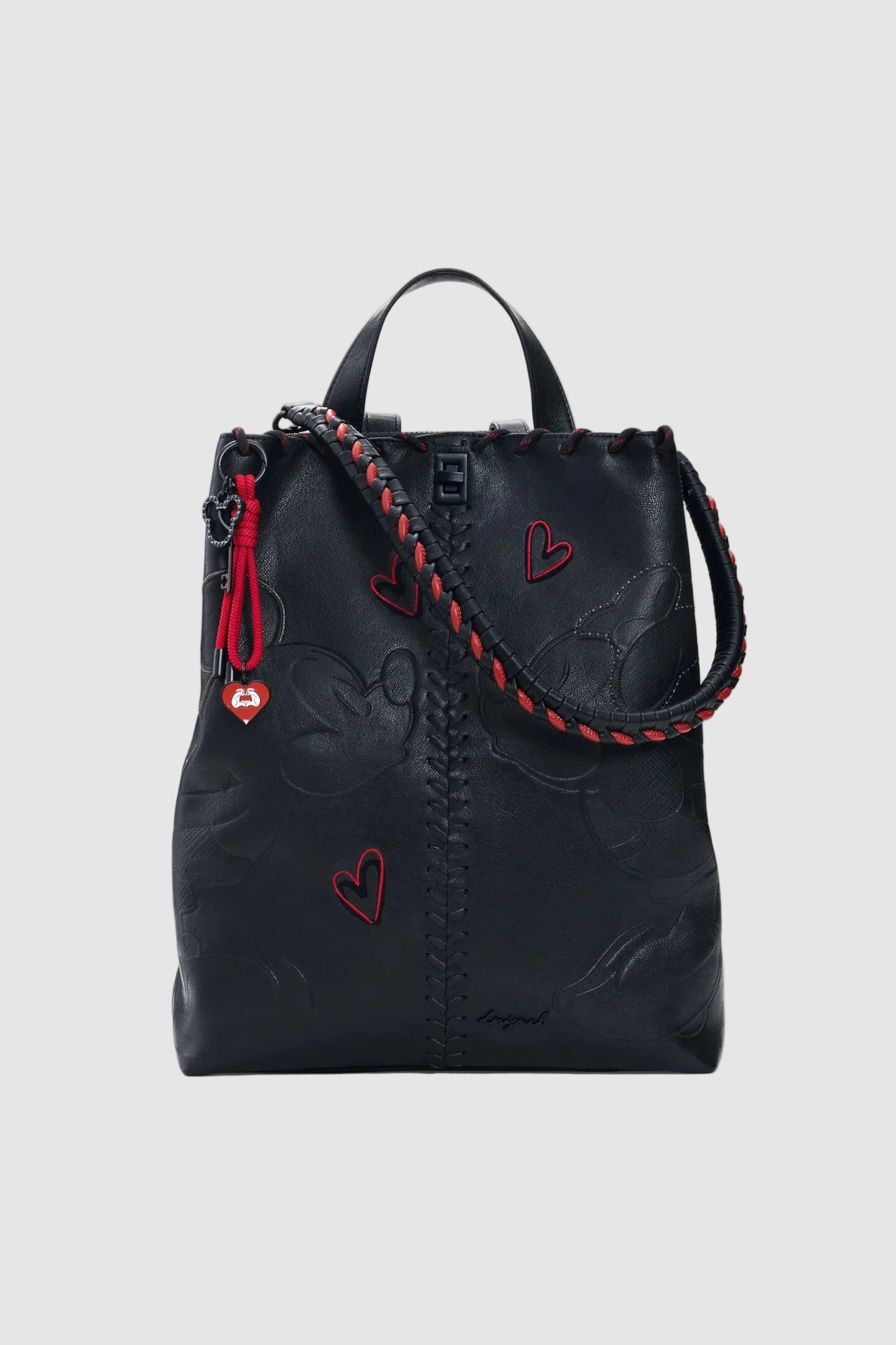 Rucsac femei Desigual negru cu inimioare aplicate și cusături