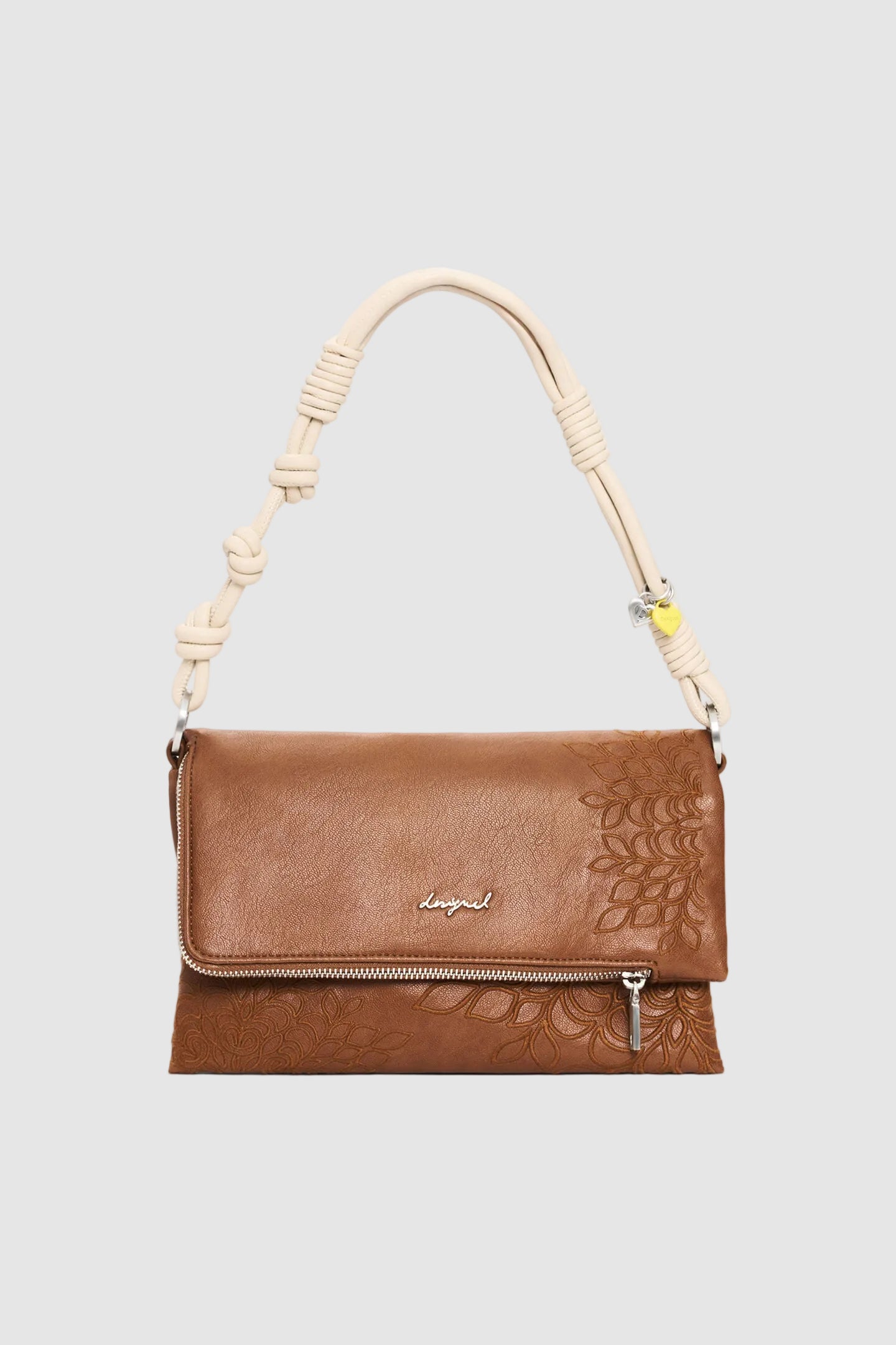 Geantă femei Desigual caramel cu emboss floral și curea noduri