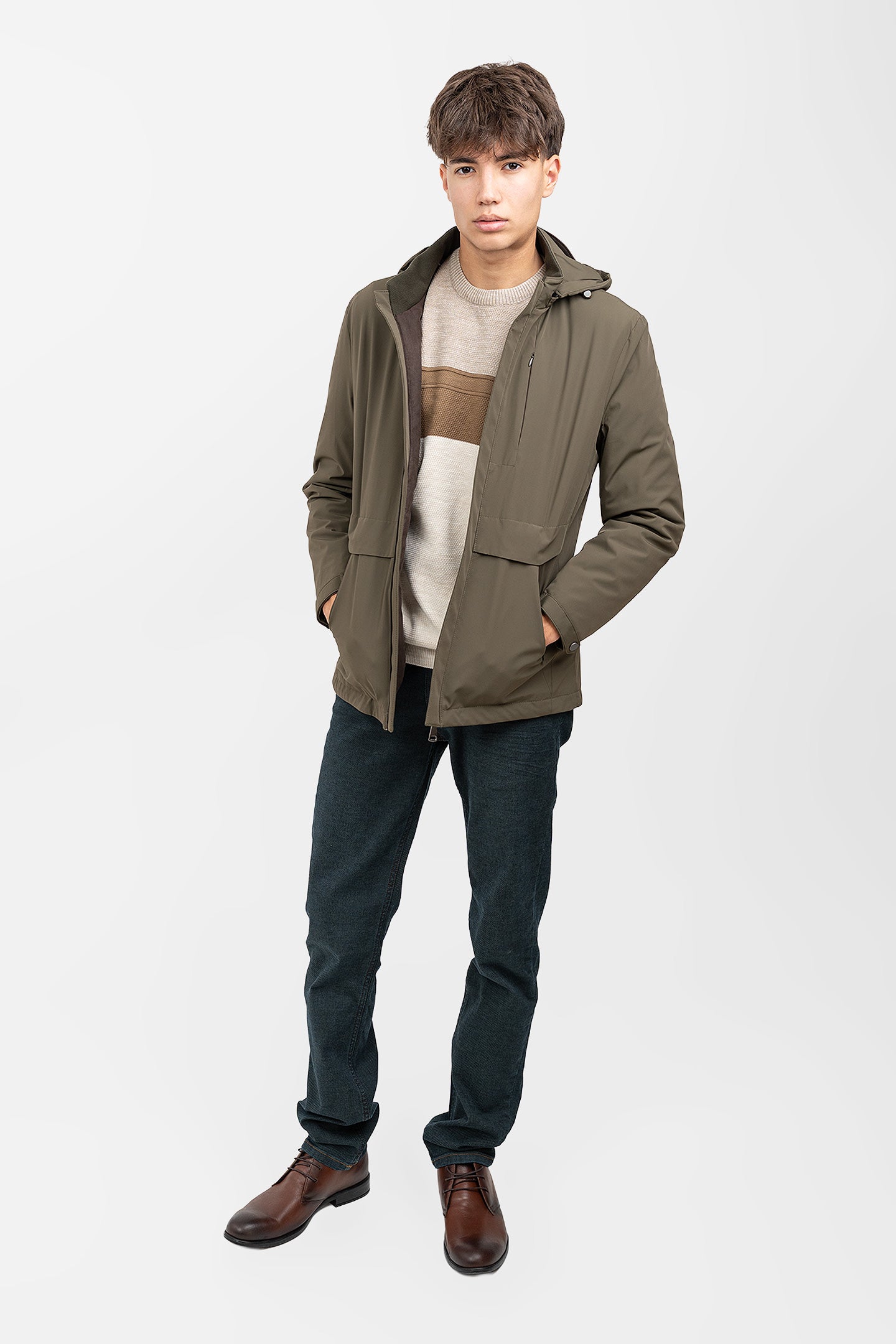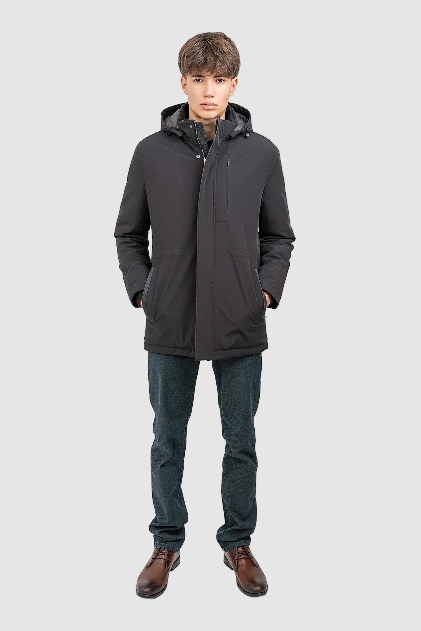 Geacă bărbați cu glugă și croială dreaptă, maro