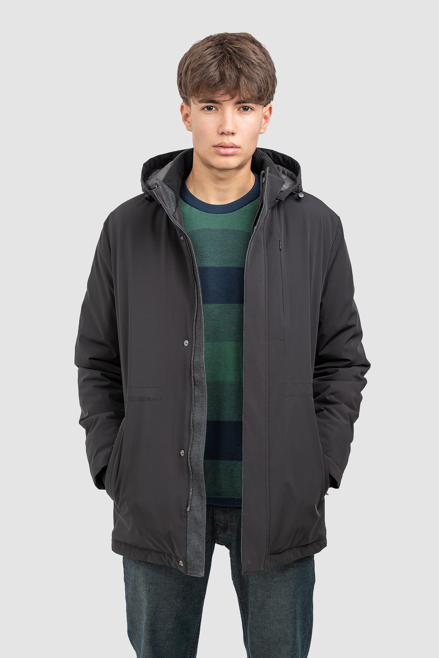Geacă bărbați cu glugă și închidere frontală, gri