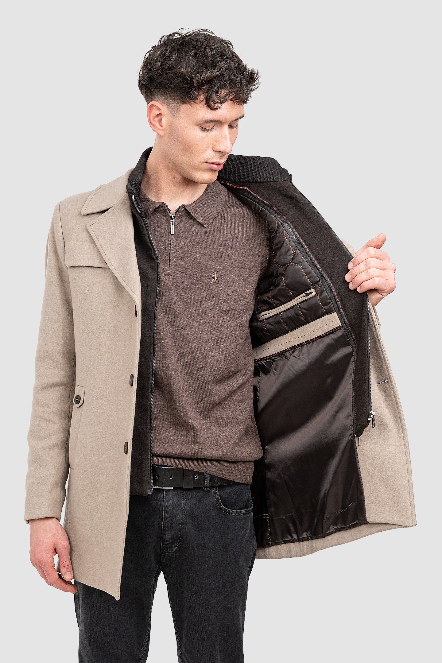 Palton pentru bărbați realizat dintr-un amestec de lână și cașmir, conceput pentru sezonul Toamnă–Iarnă. Modelul are o construcție structurată, cu aspect sobru și funcțional, potrivit pentru ținute urbane și smart-casual.