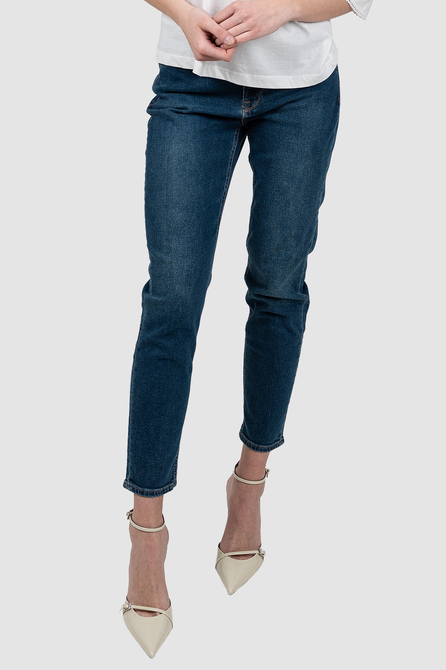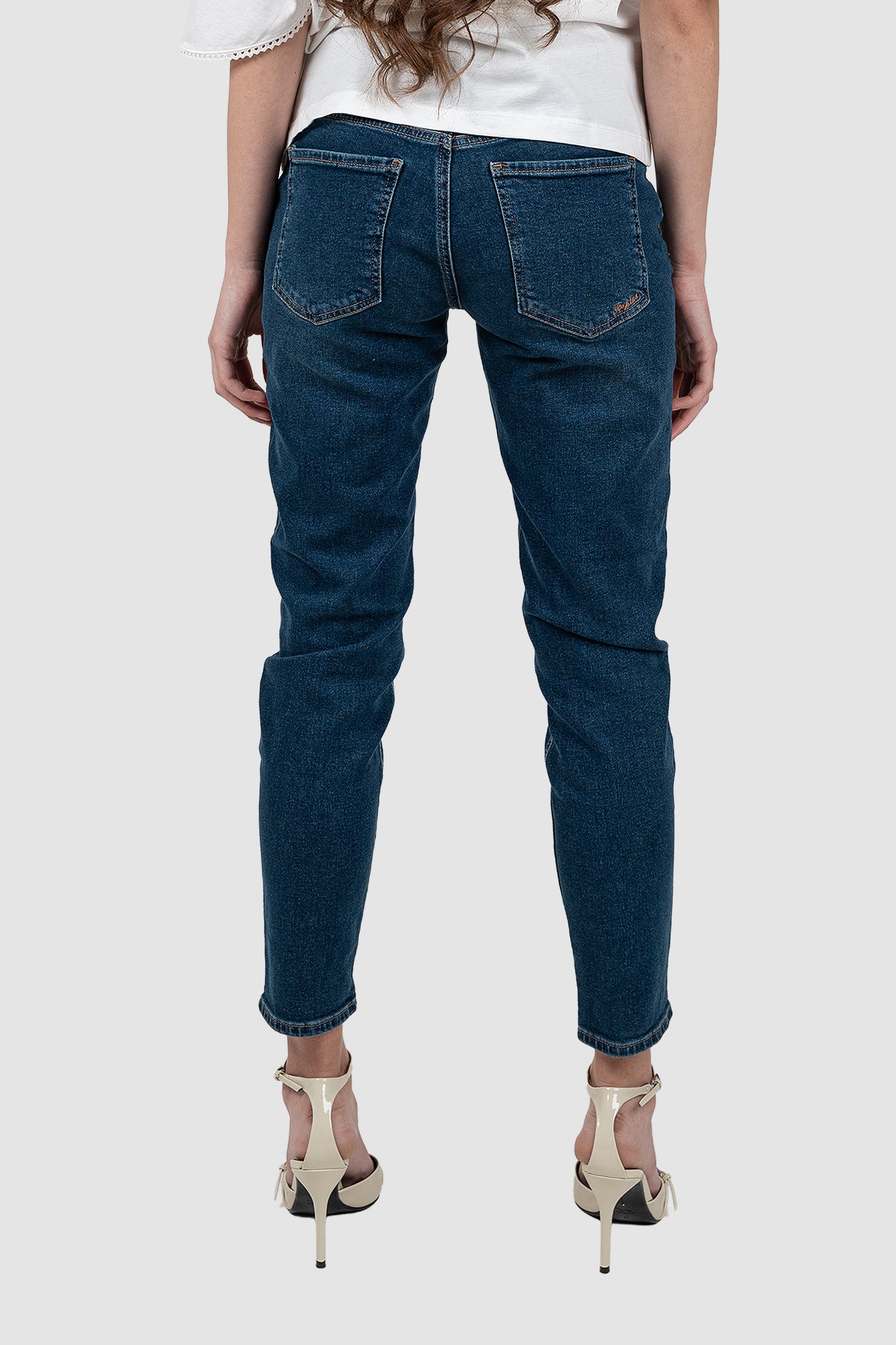 Pantaloni damă Rep Plus realizați din material sintetic cu elasticitate, în nuanță albastru mediu. Modelul are croială conică, ușor cambrată pe picior, potrivit pentru ținute casual sau smart casual în sezonul Toamnă–Iarnă.