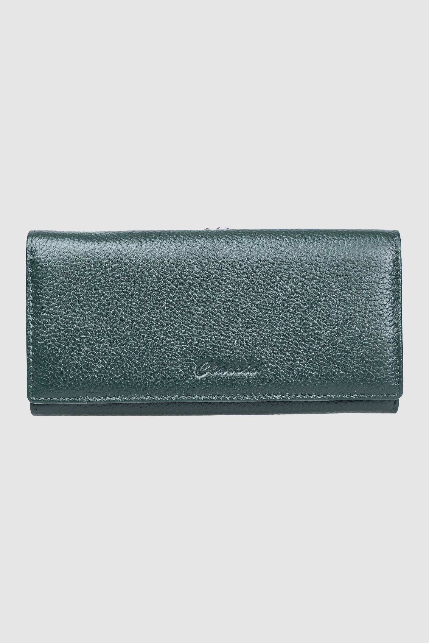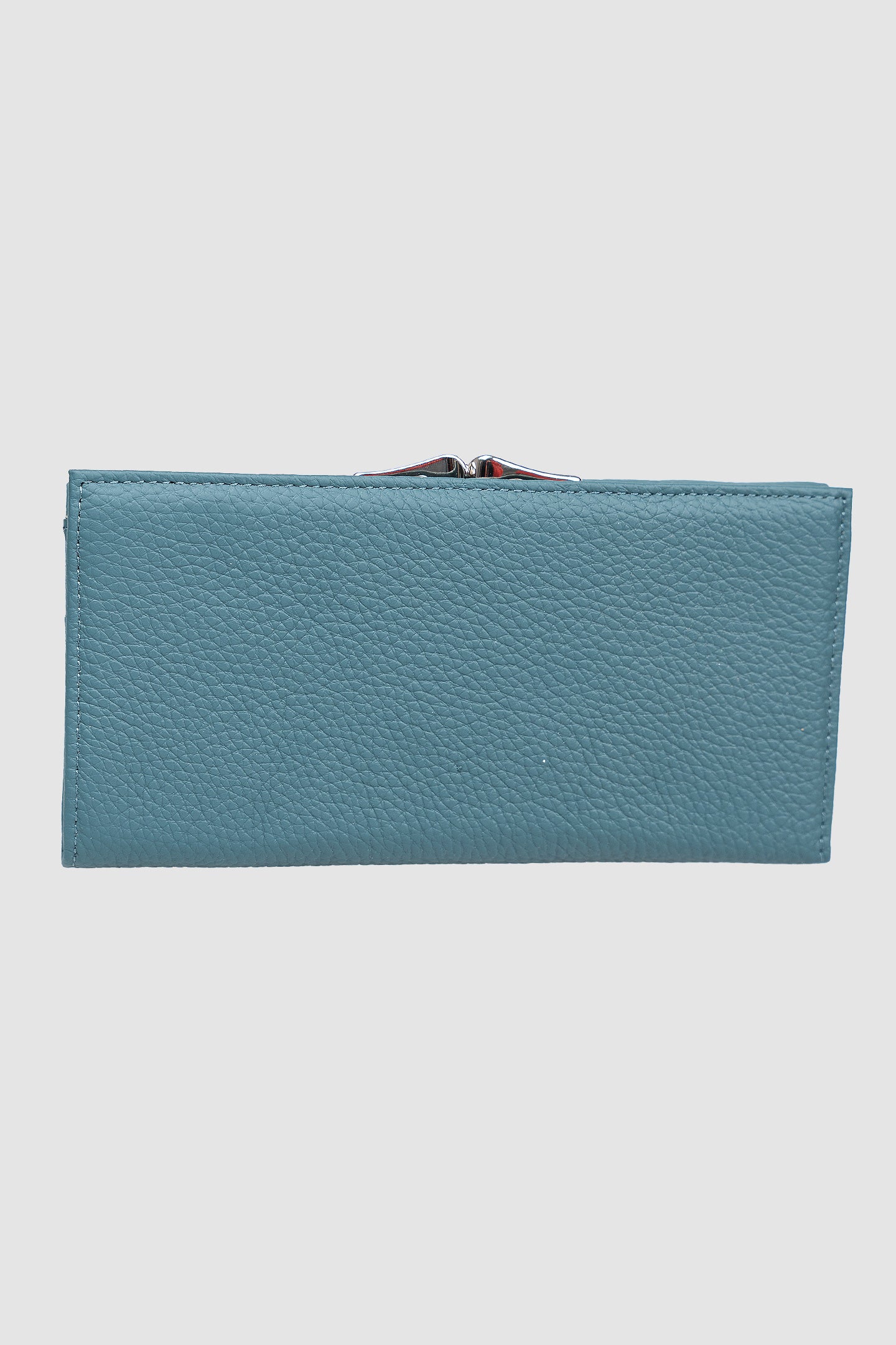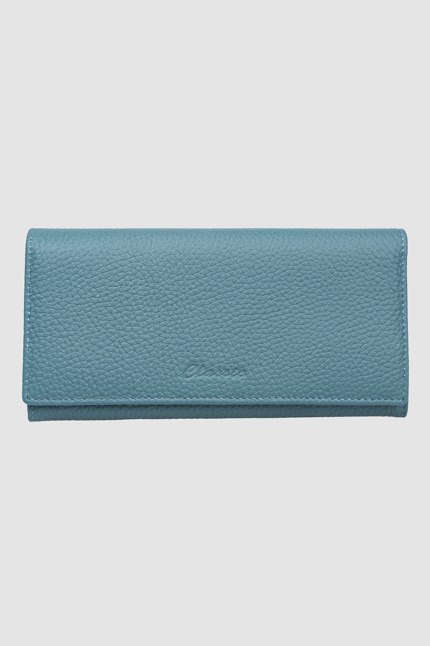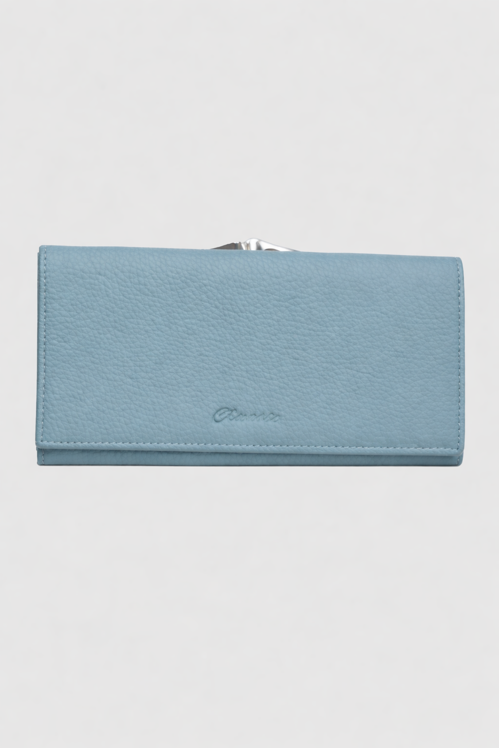 Portofel femei din piele naturală texturată cu clapă, light blue