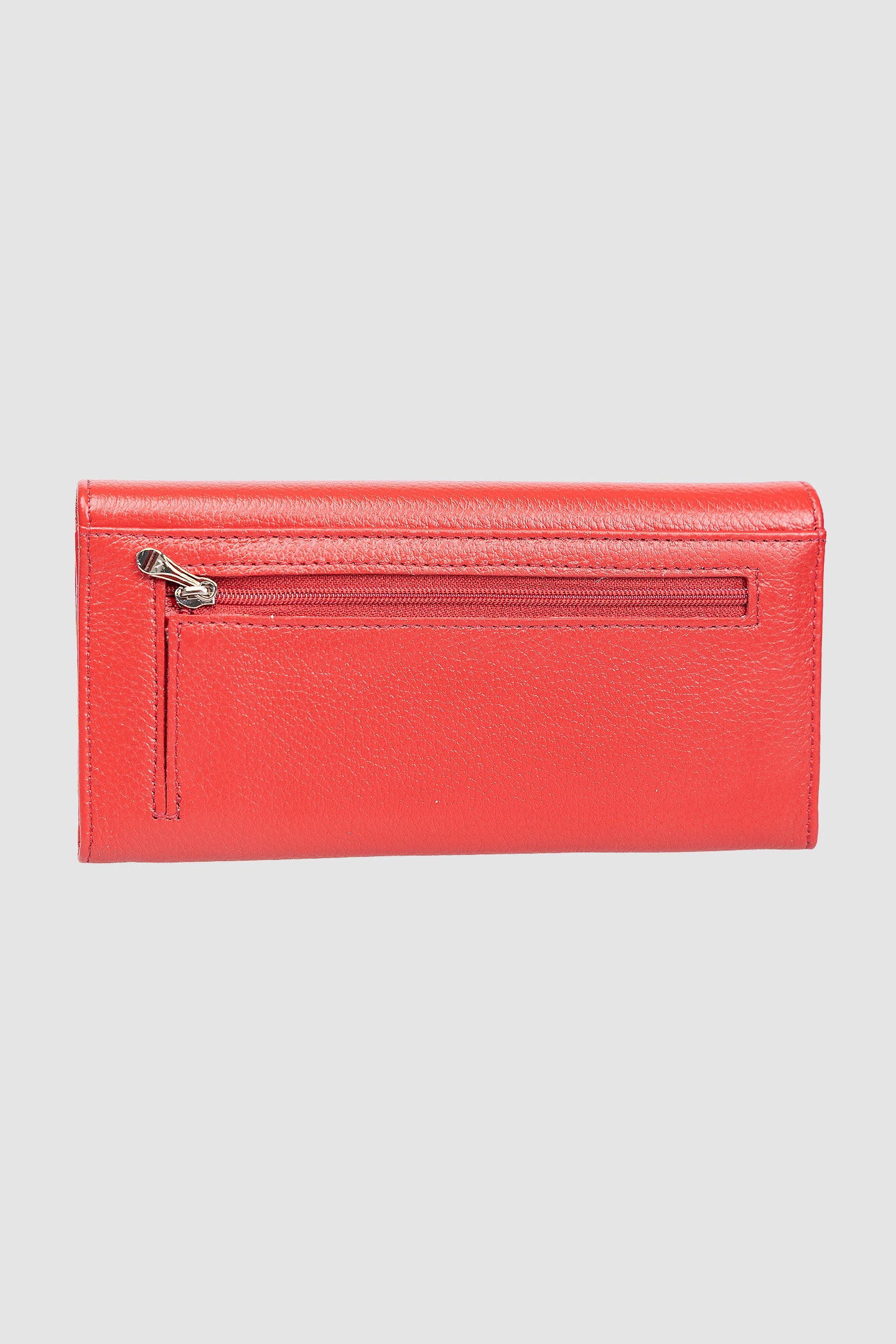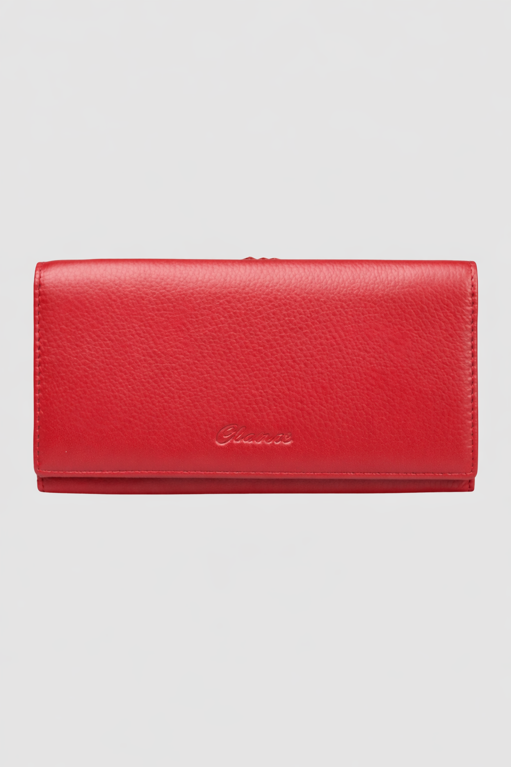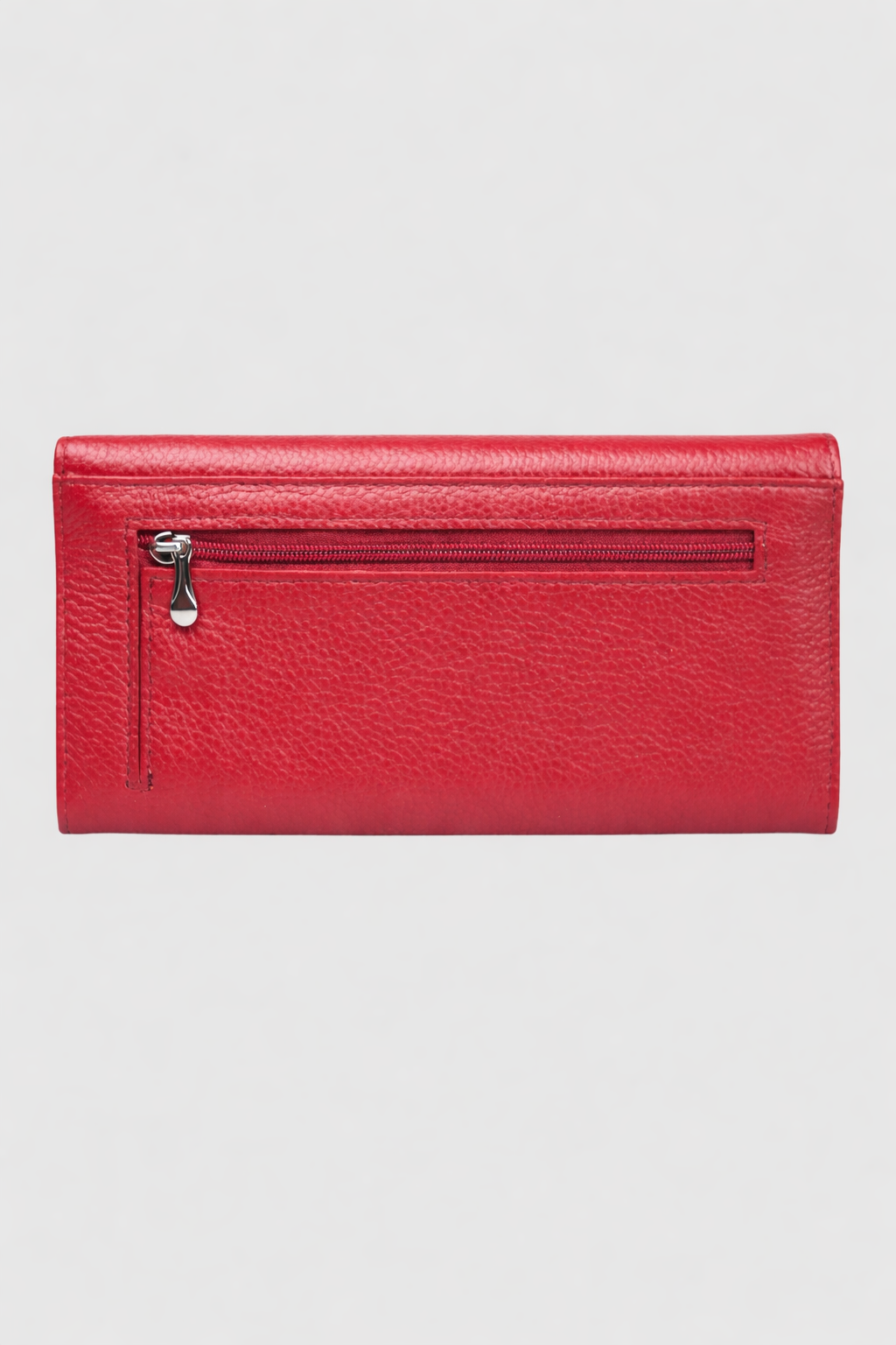 Portofel femei din piele naturală texturată cu clapă, roșu