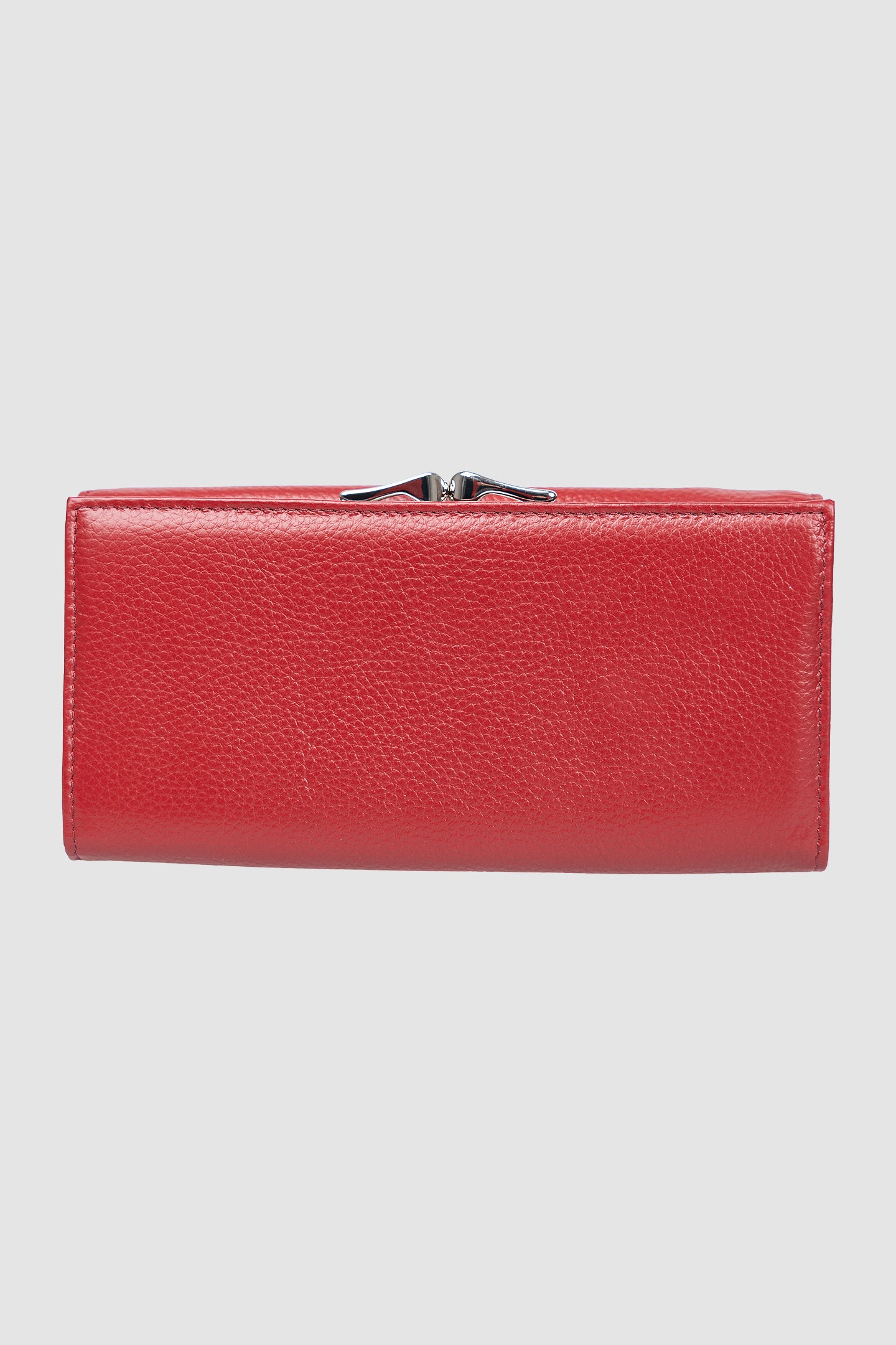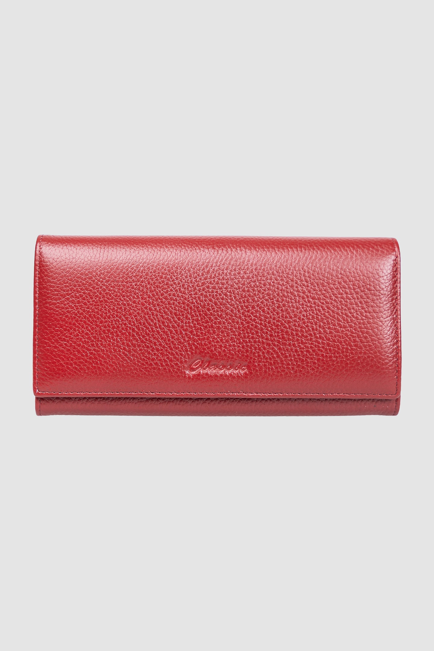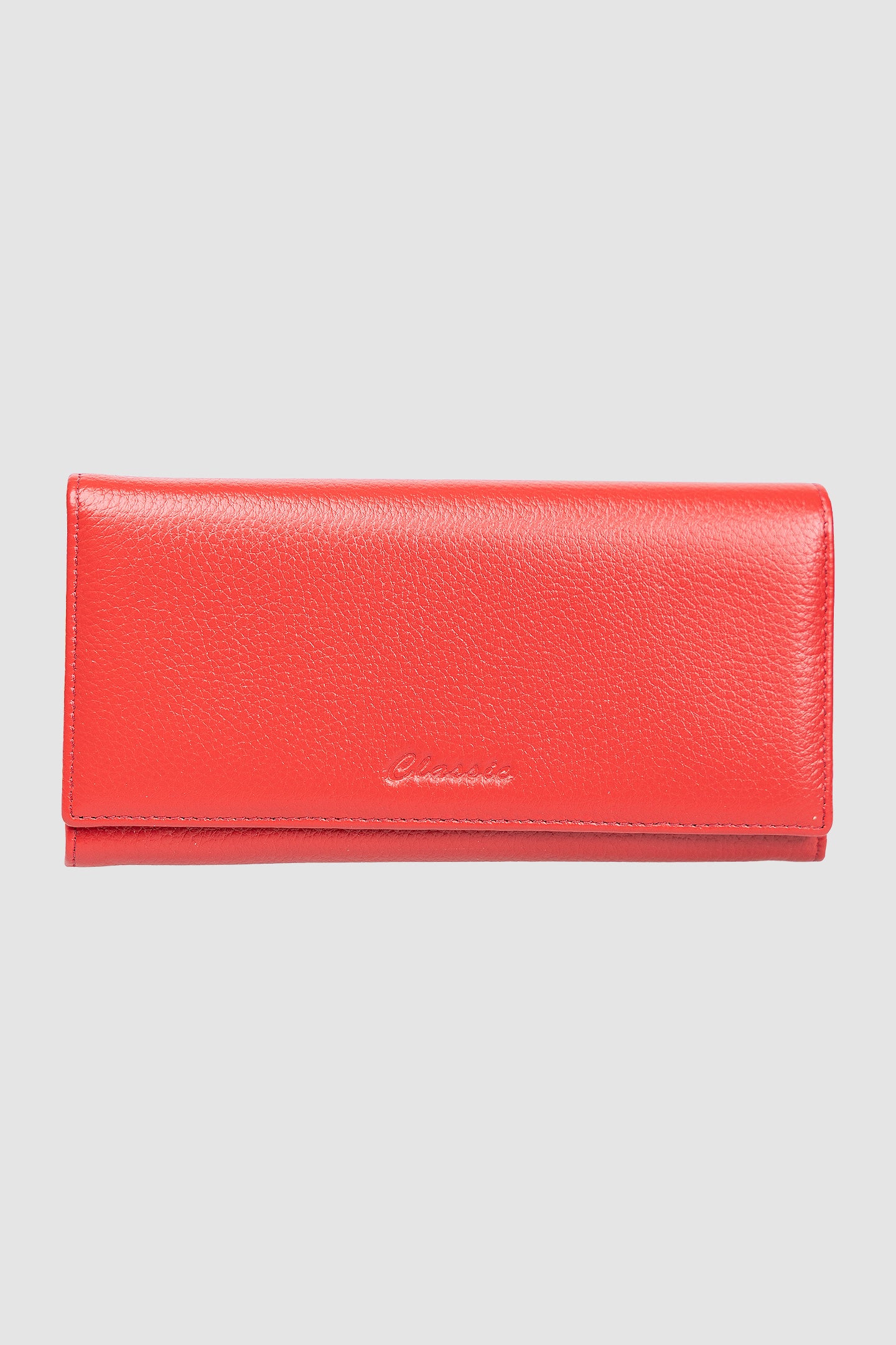Portofel femei din piele naturală texturată cu clapă, roșu