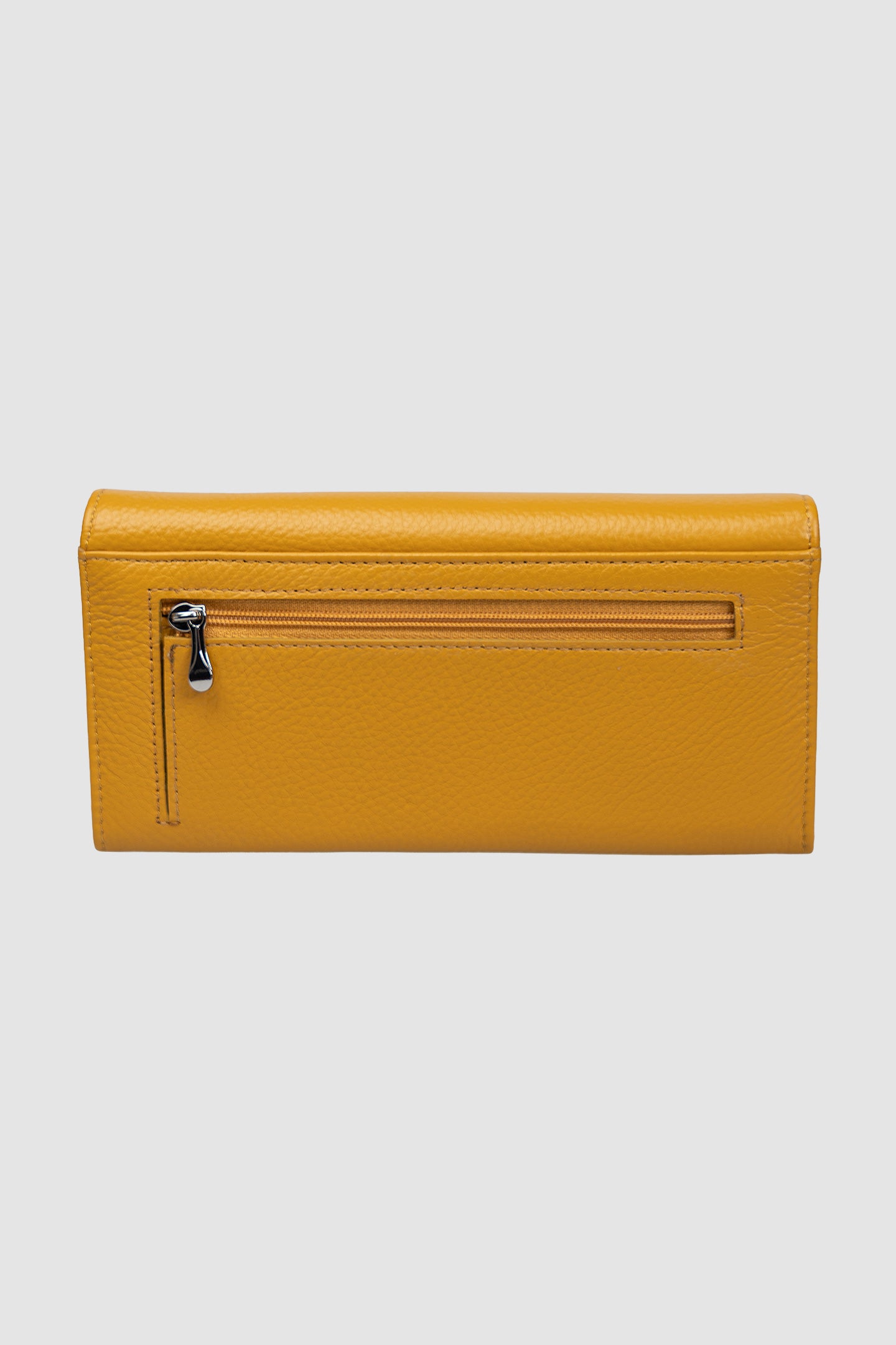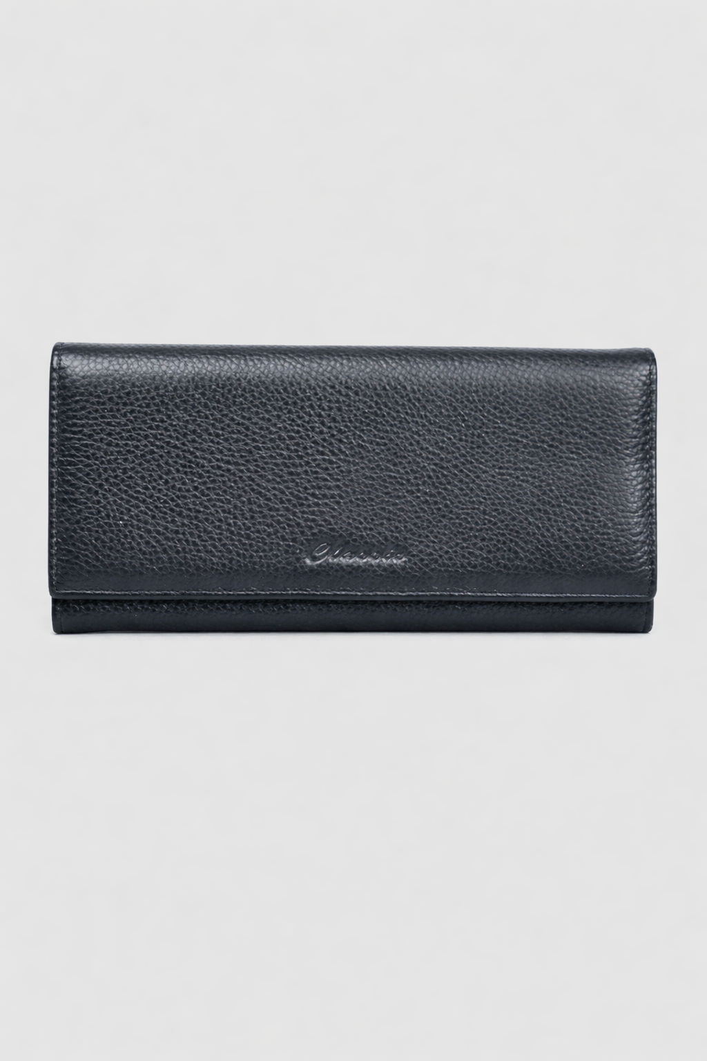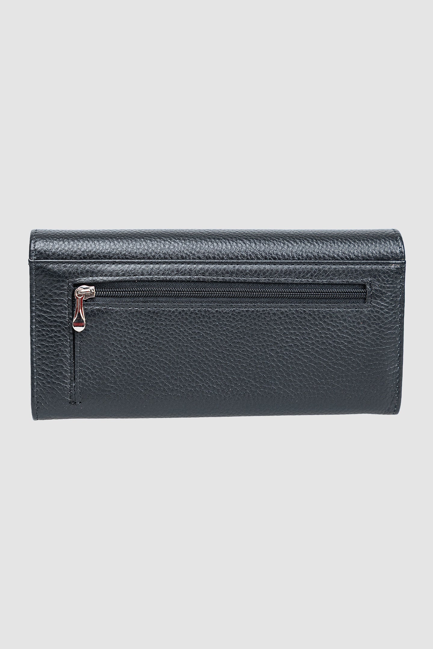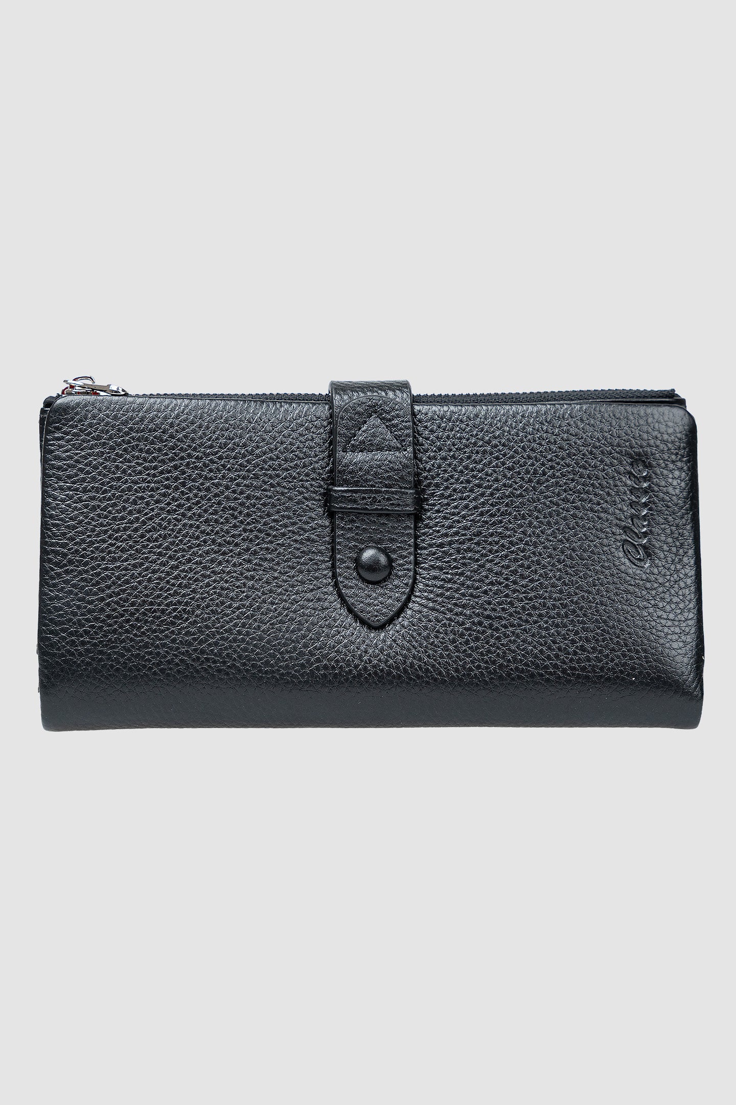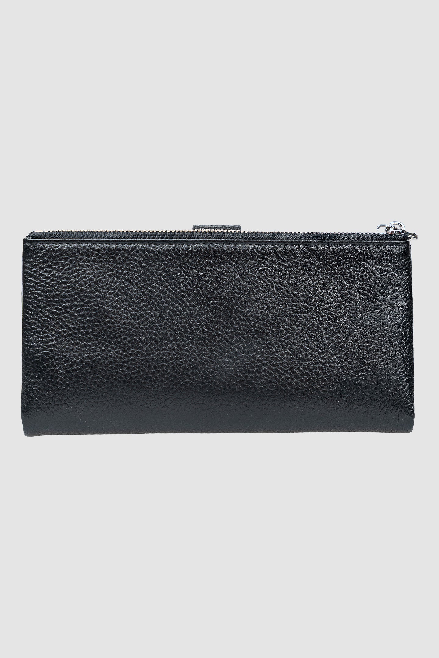 Portofel femei din piele naturală cu capsă și fermoar, negru