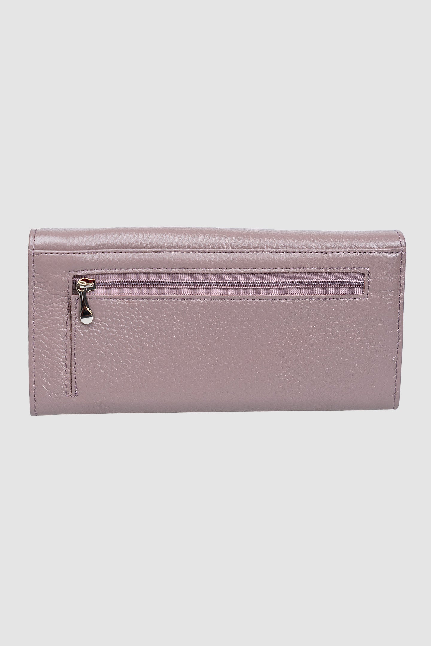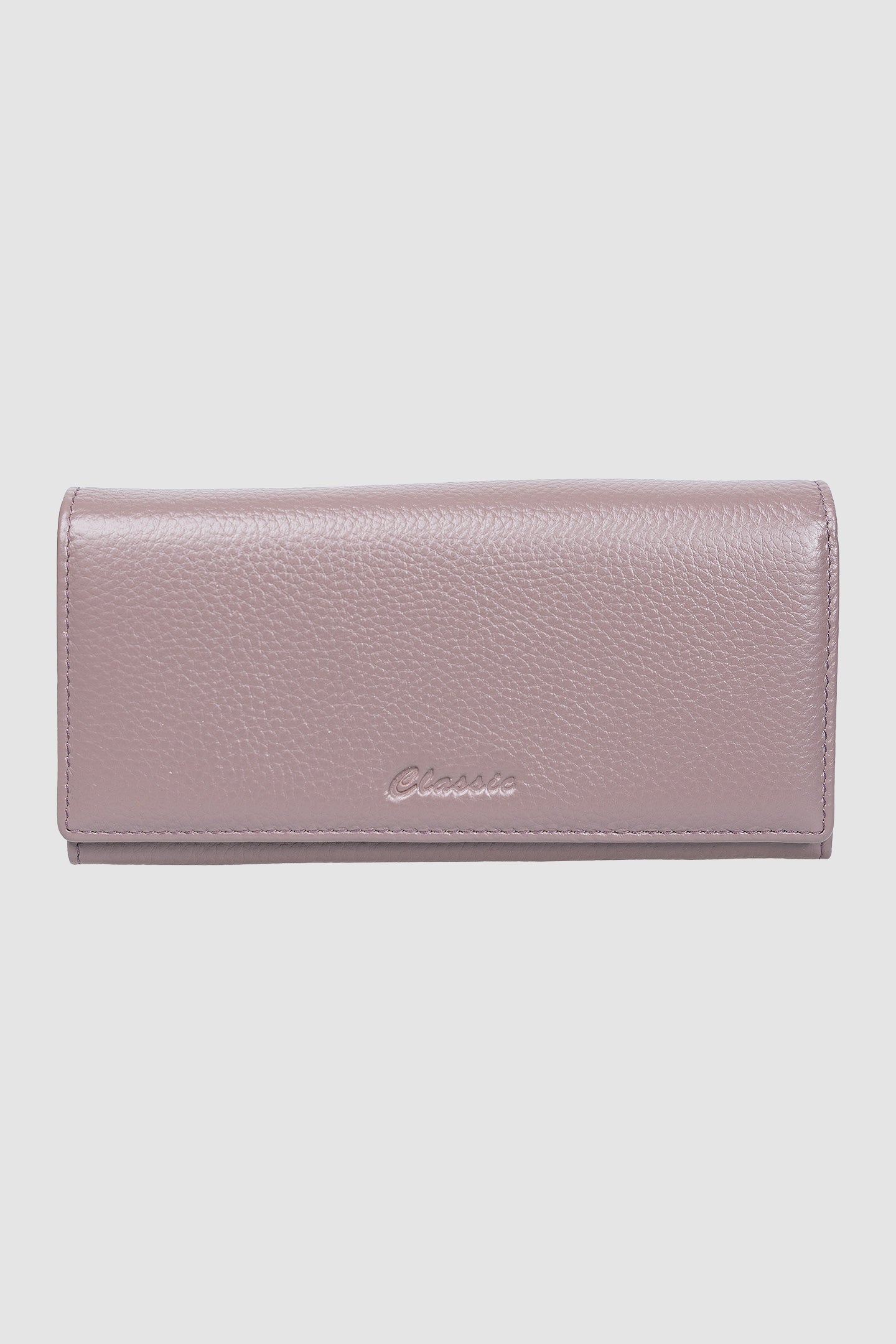 Portofel femei din piele naturală texturată cu clapă, roz pudră