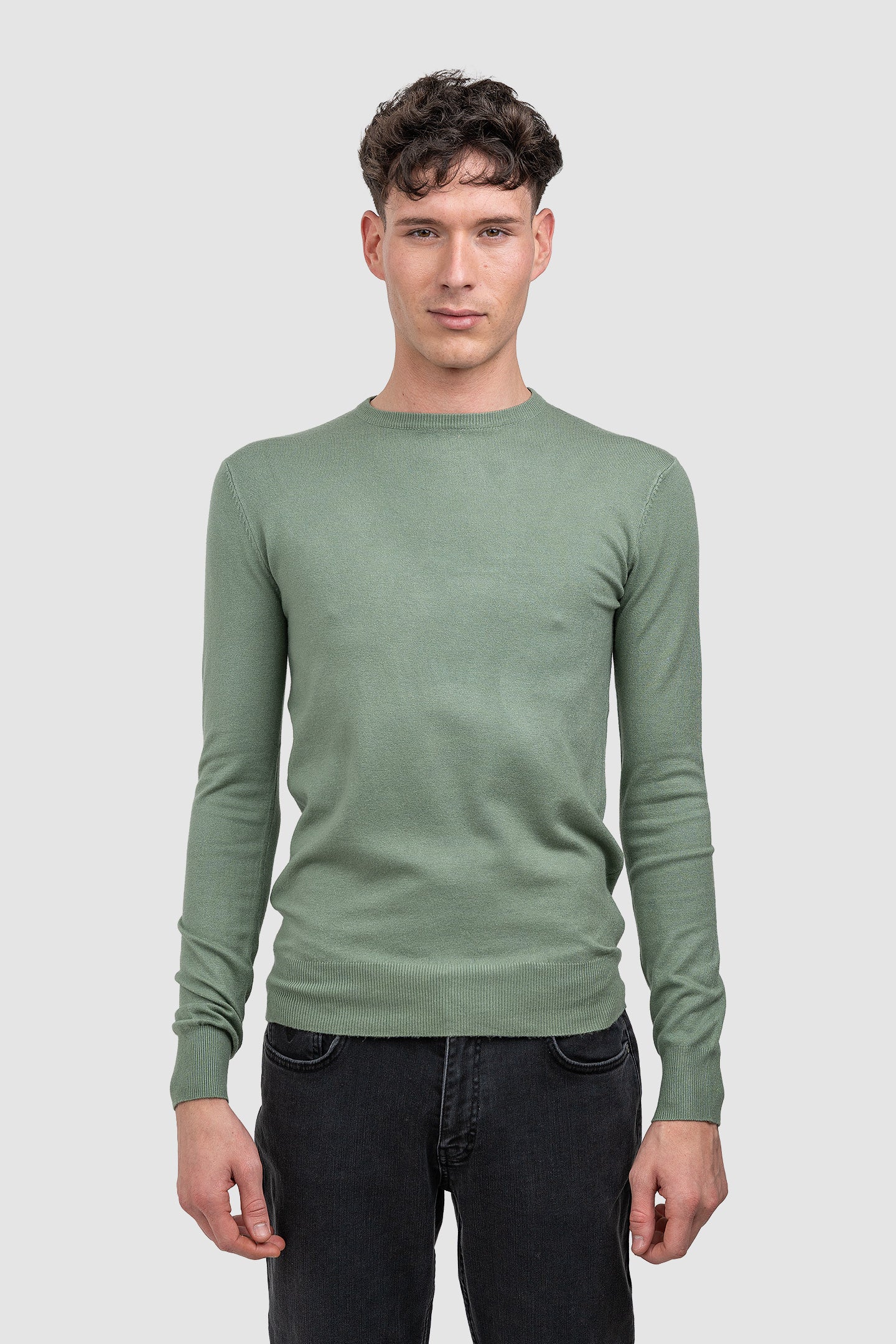 Pulover bărbați cu guler rotund, tricot fin, verde mentă