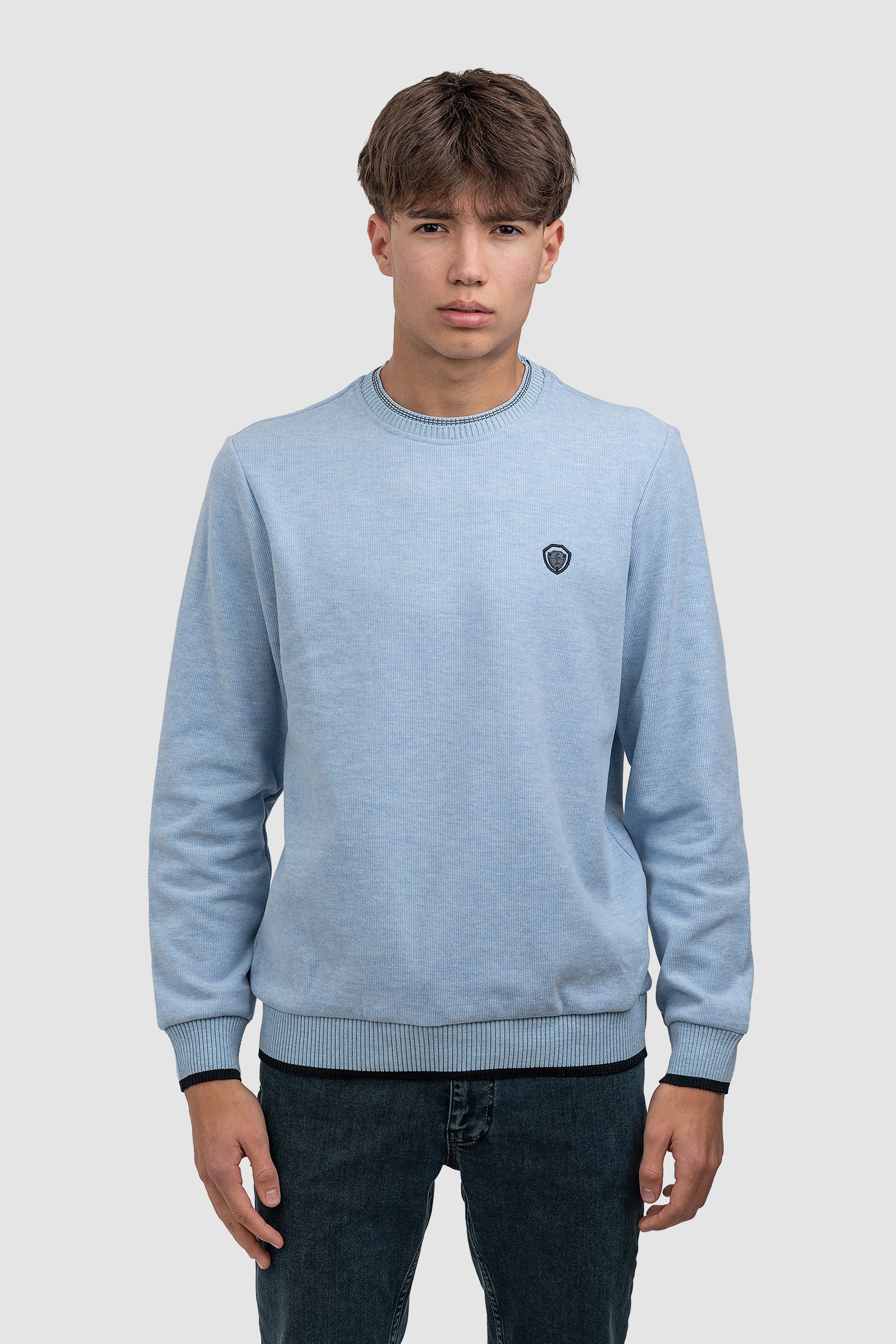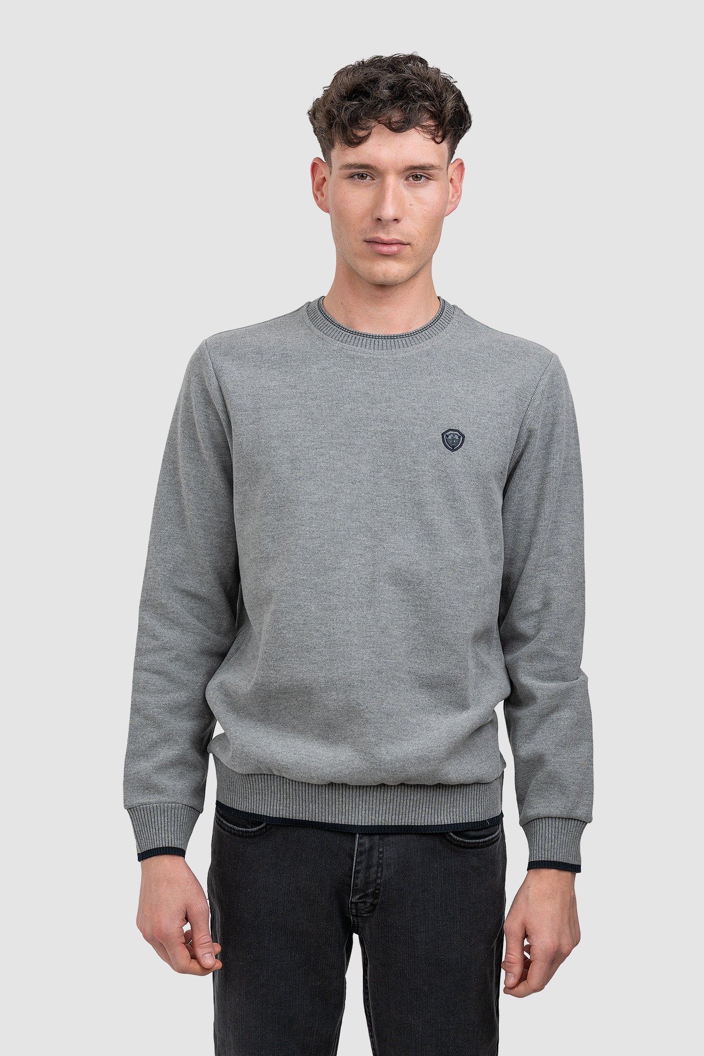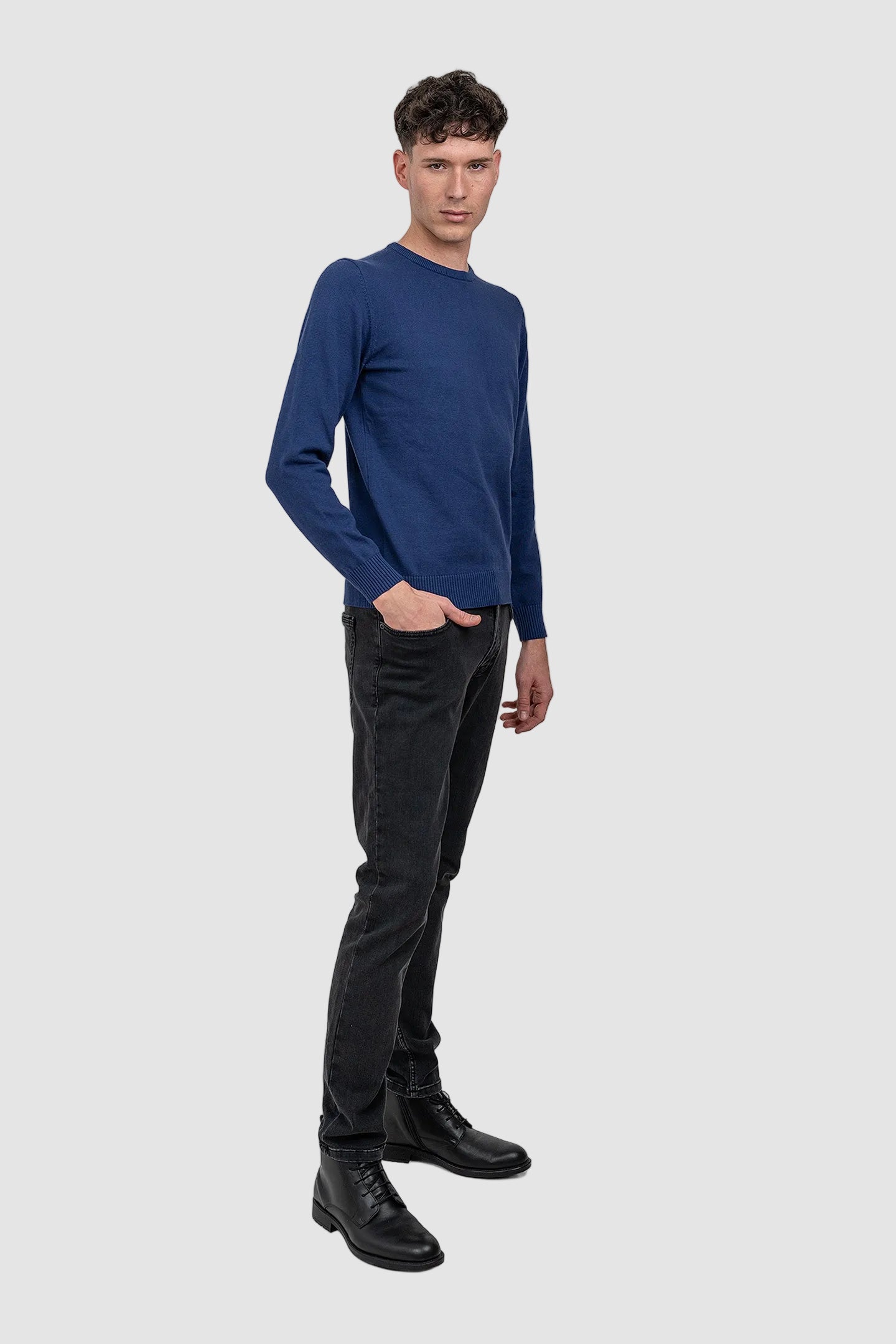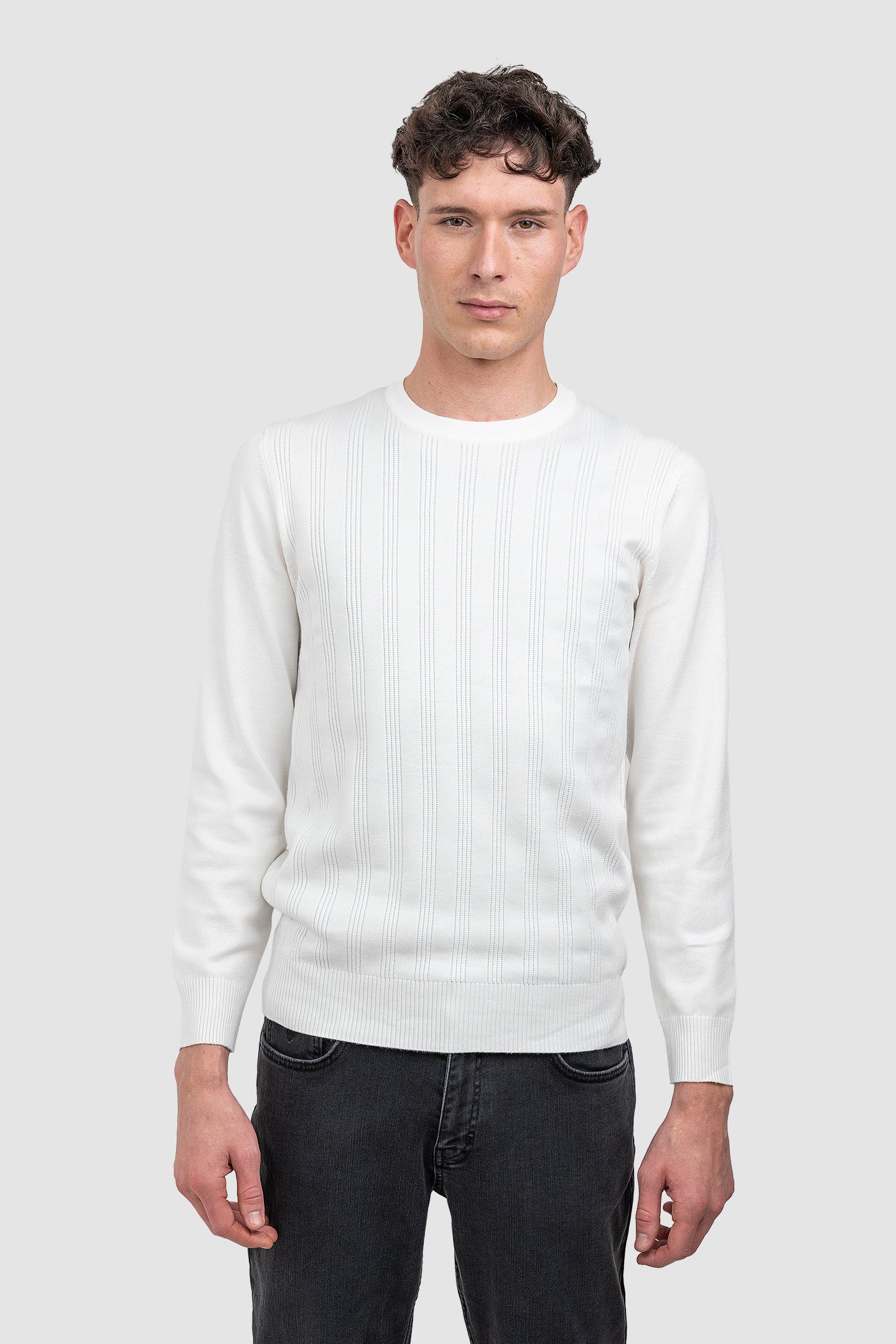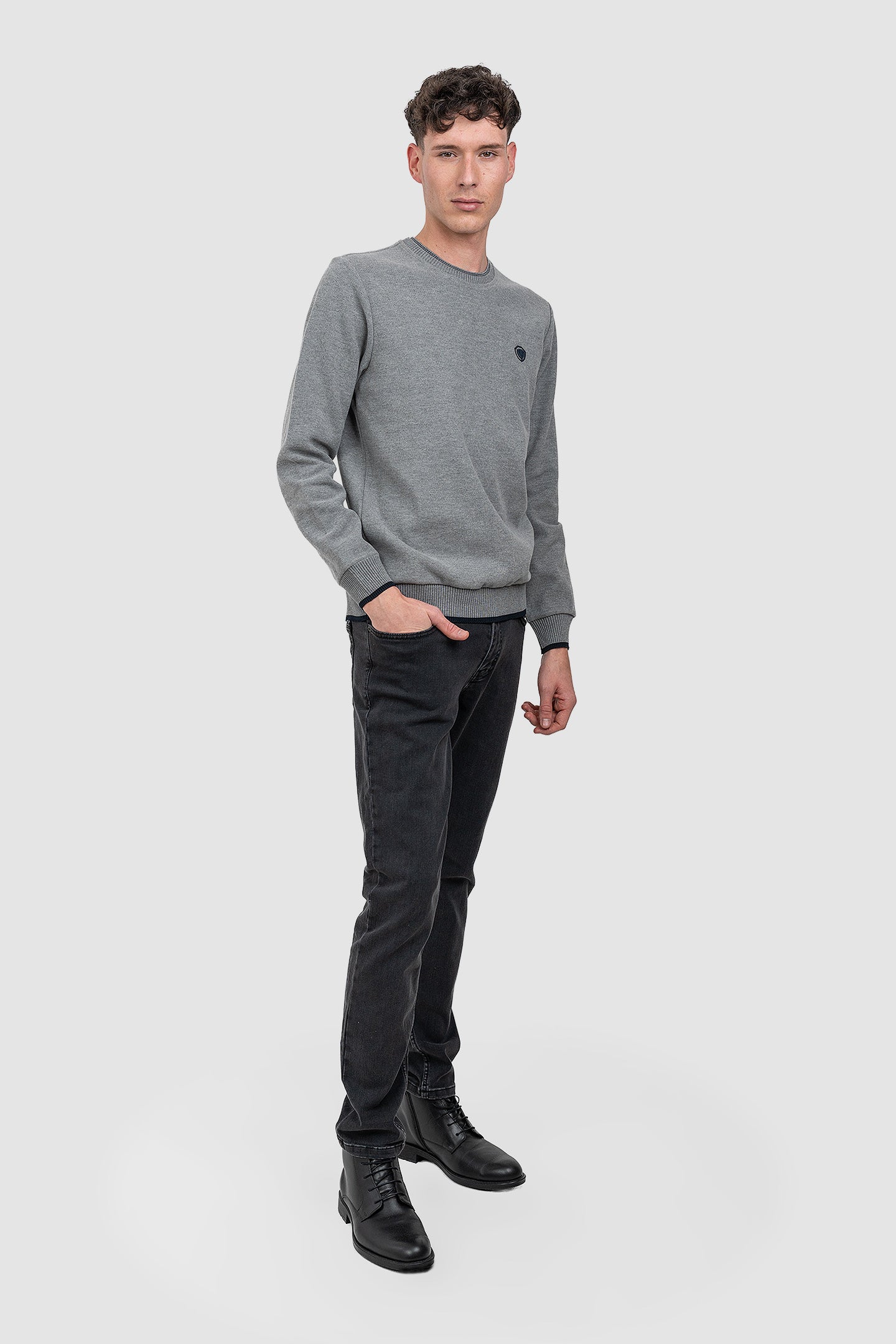 Pulover bărbați cu guler rotund și textură fină tricotată