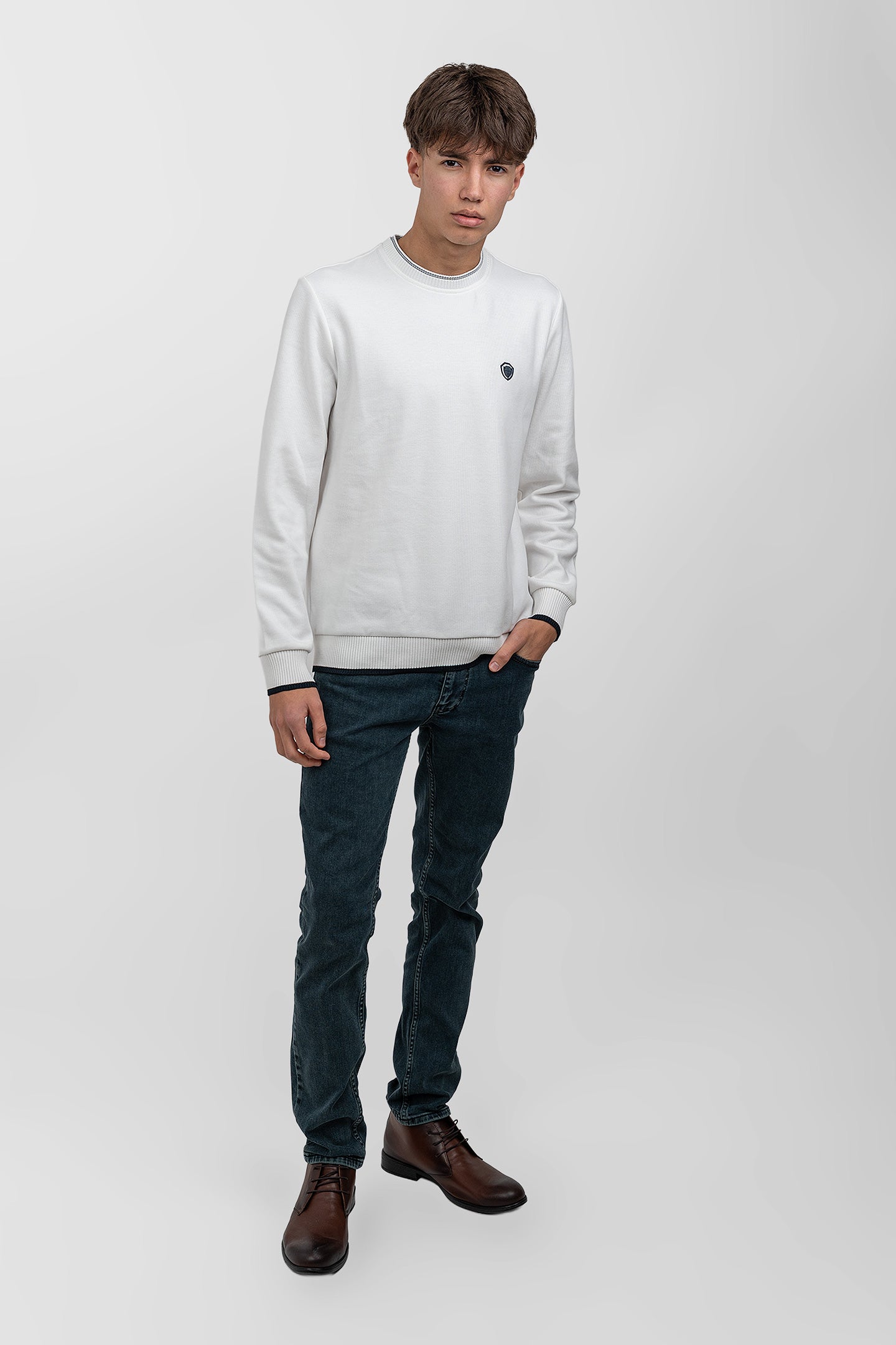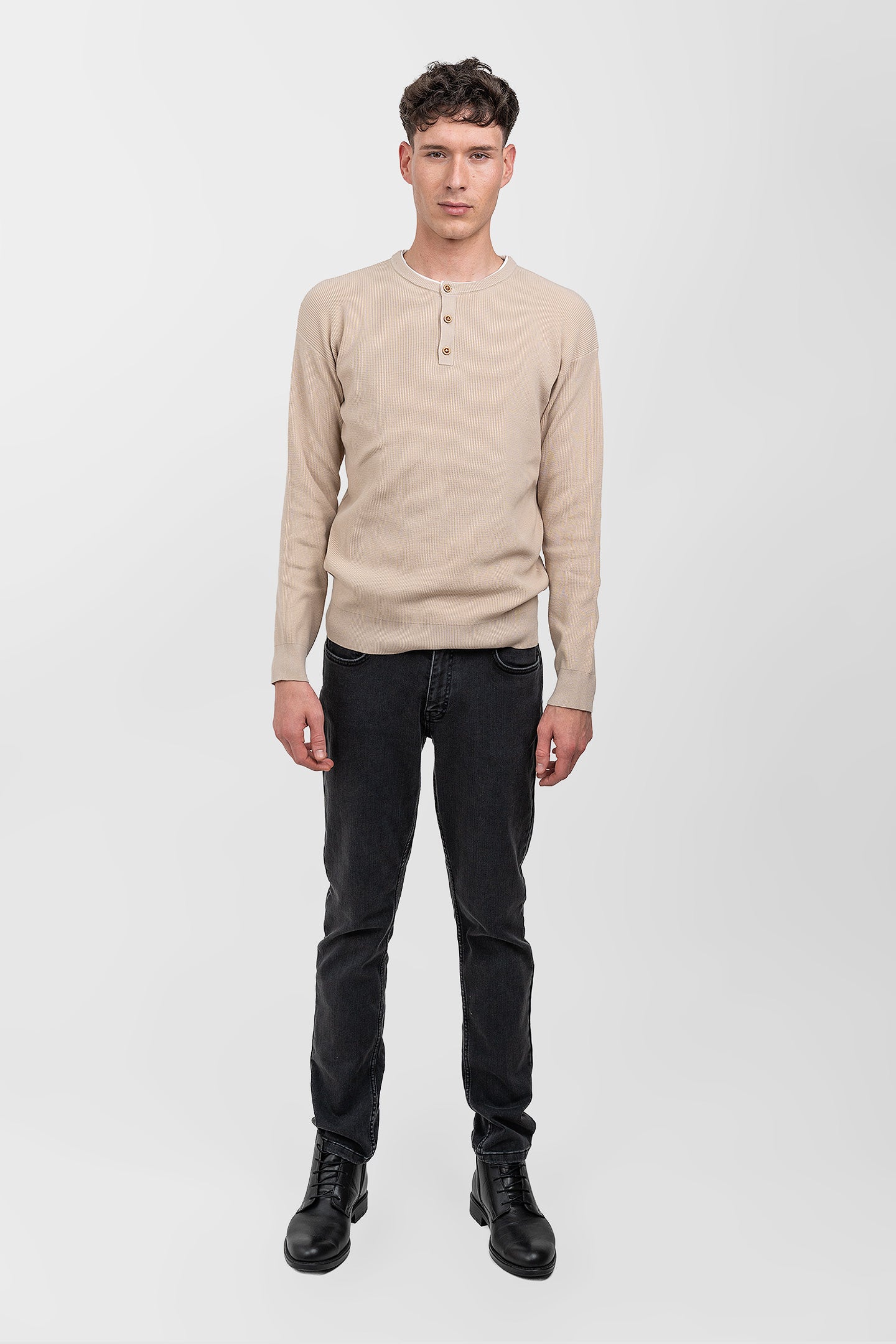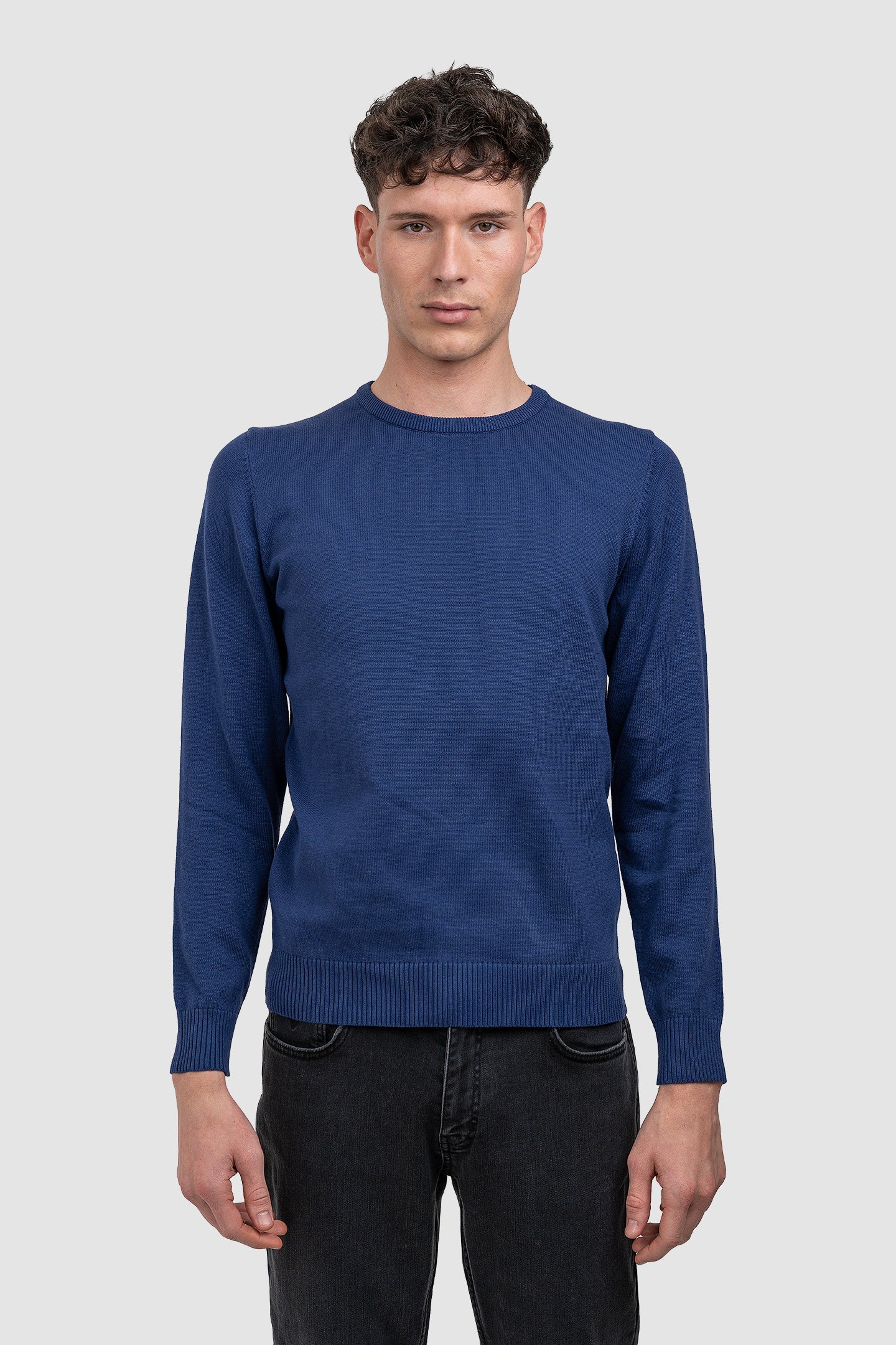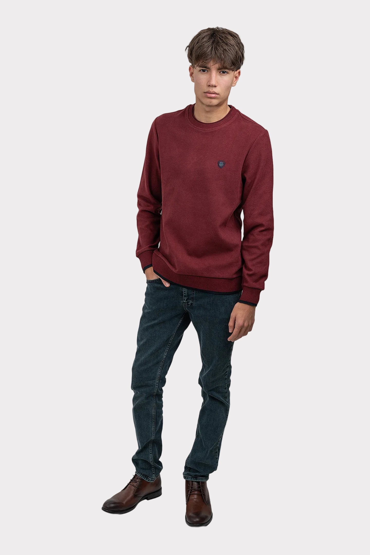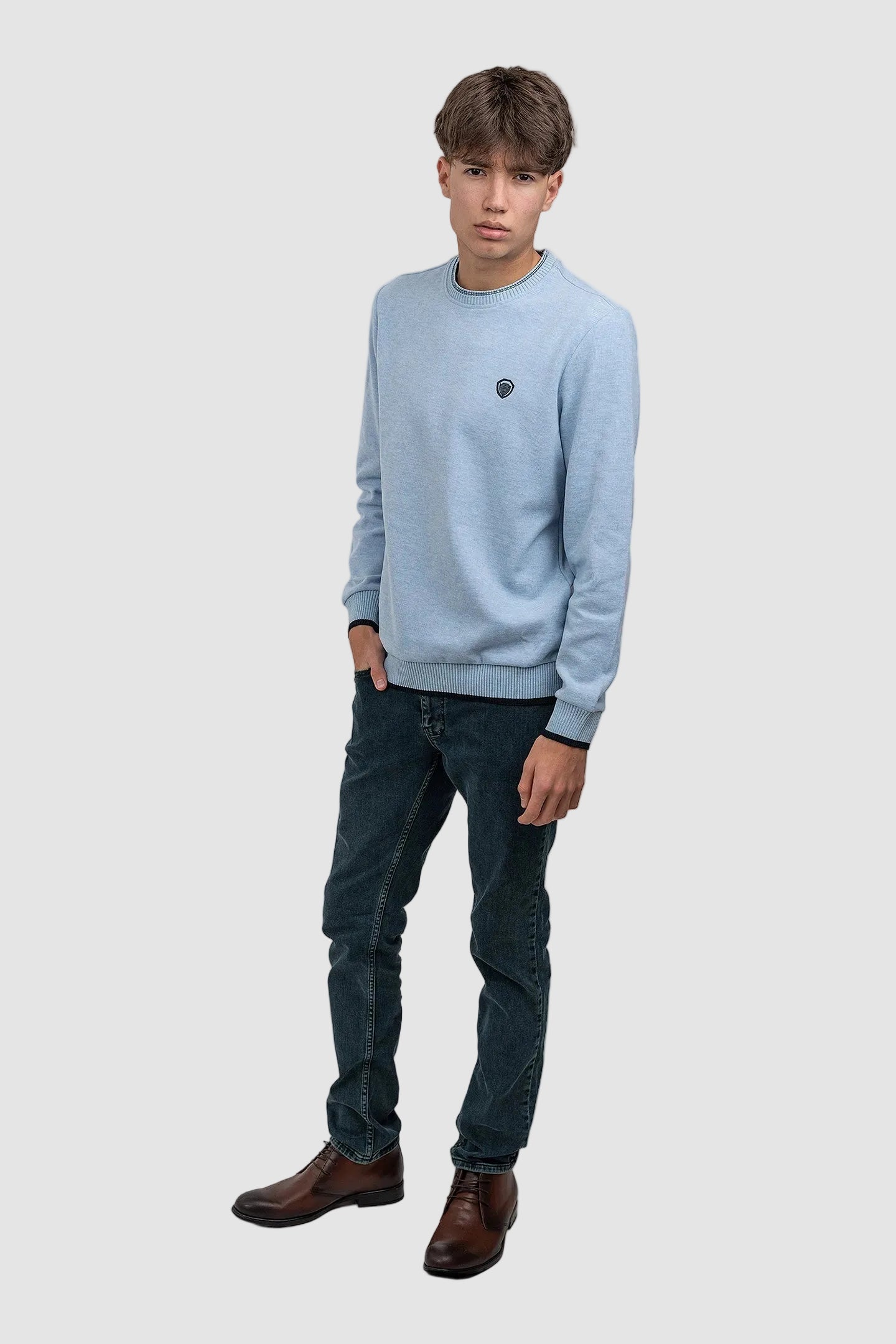 Pulover bărbați cu guler rotund și textură fină tricotată