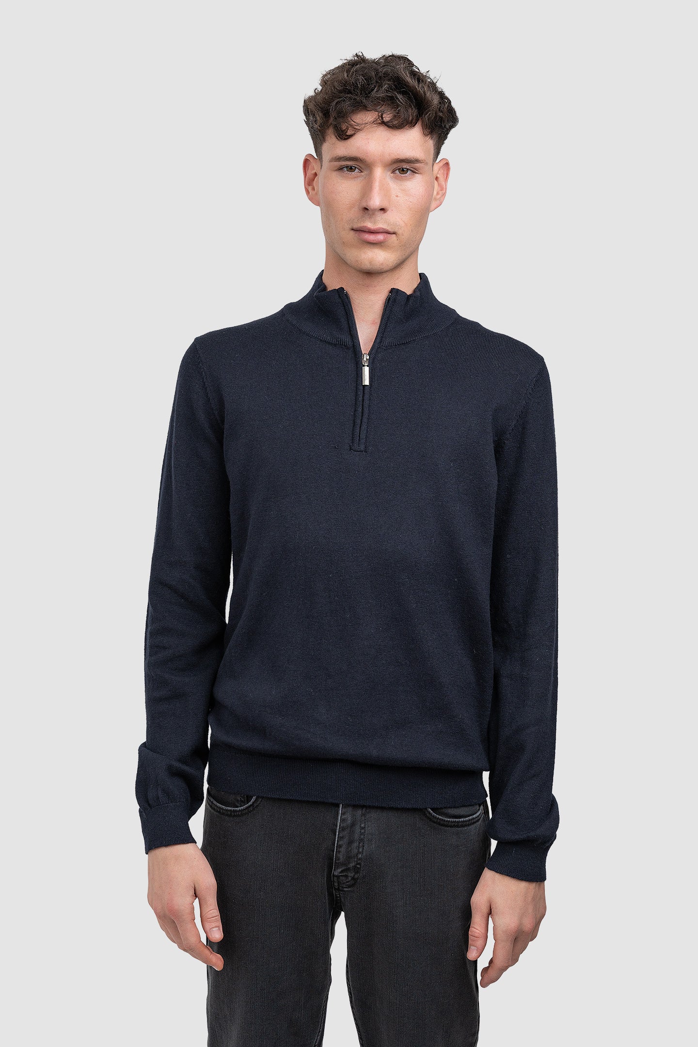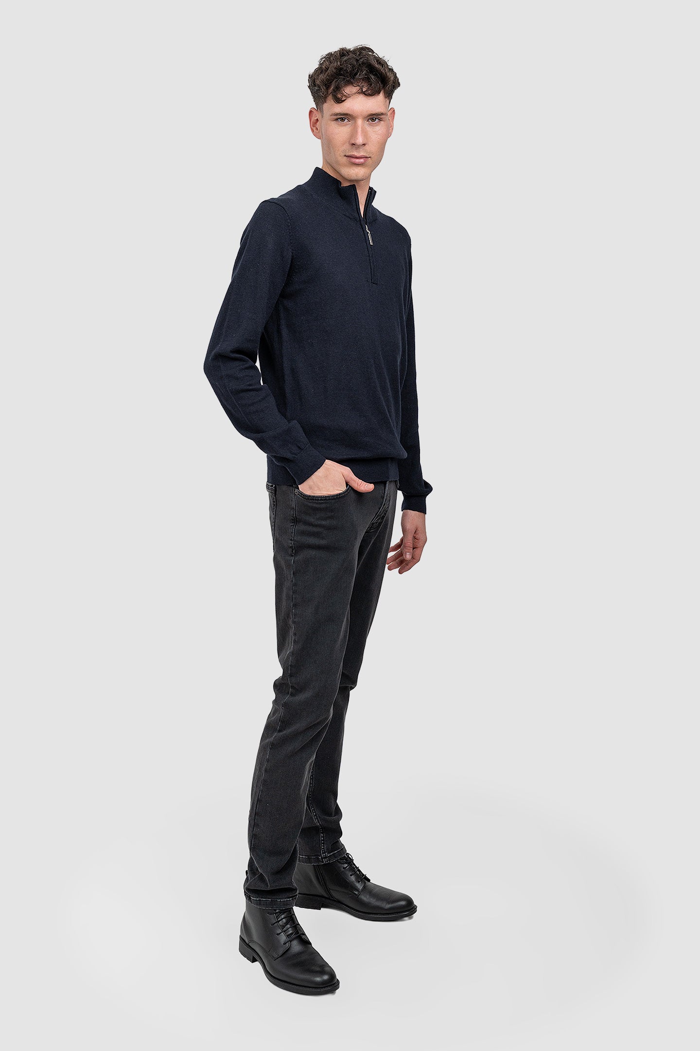 Pulover bărbați cu guler înalt și fermoar, bleumarin