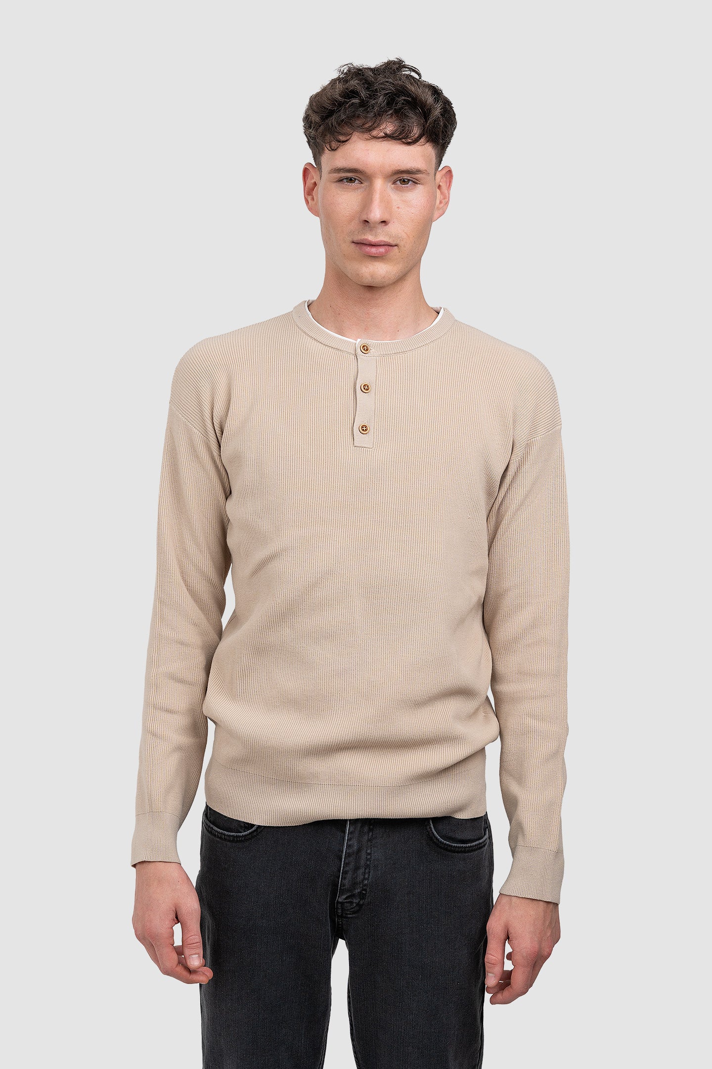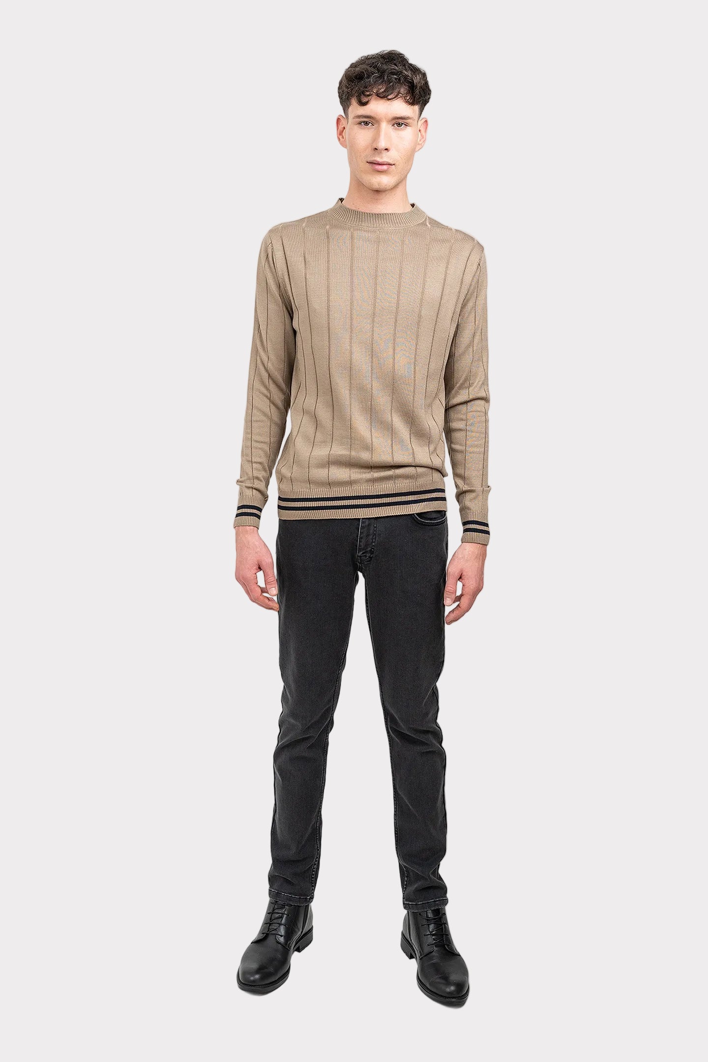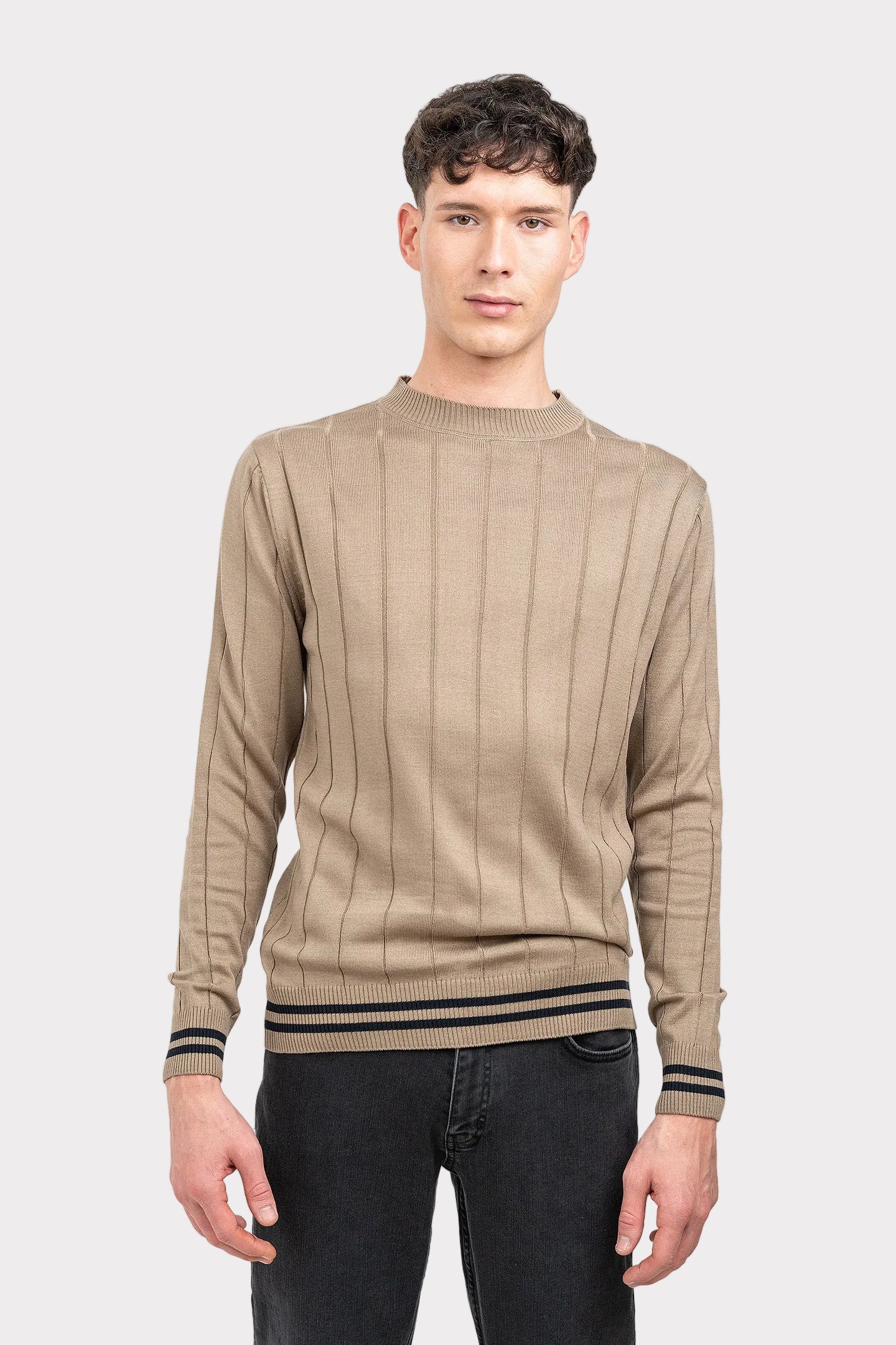 Pulover bărbați tricotat cu nervuri verticale, bej