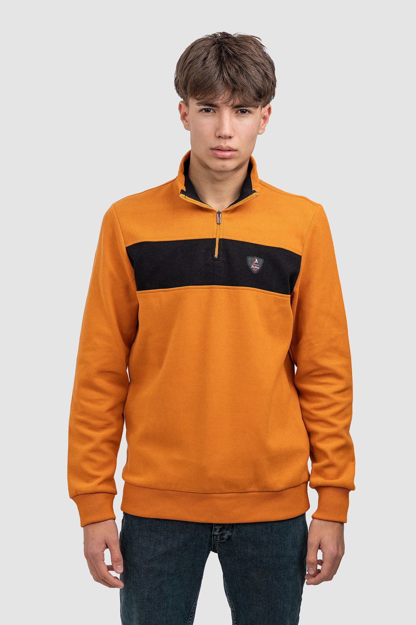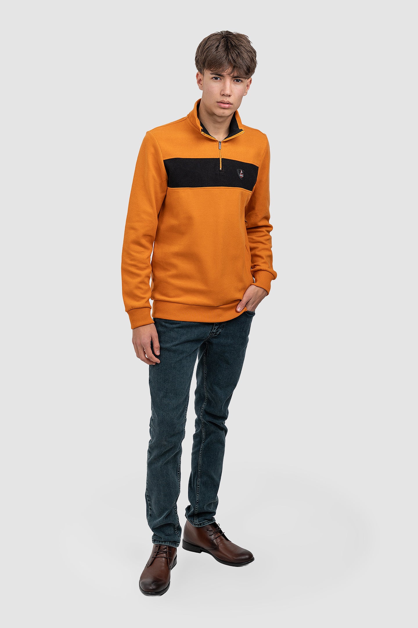 Pulover bărbați cu fermoar scurt și bandă contrast