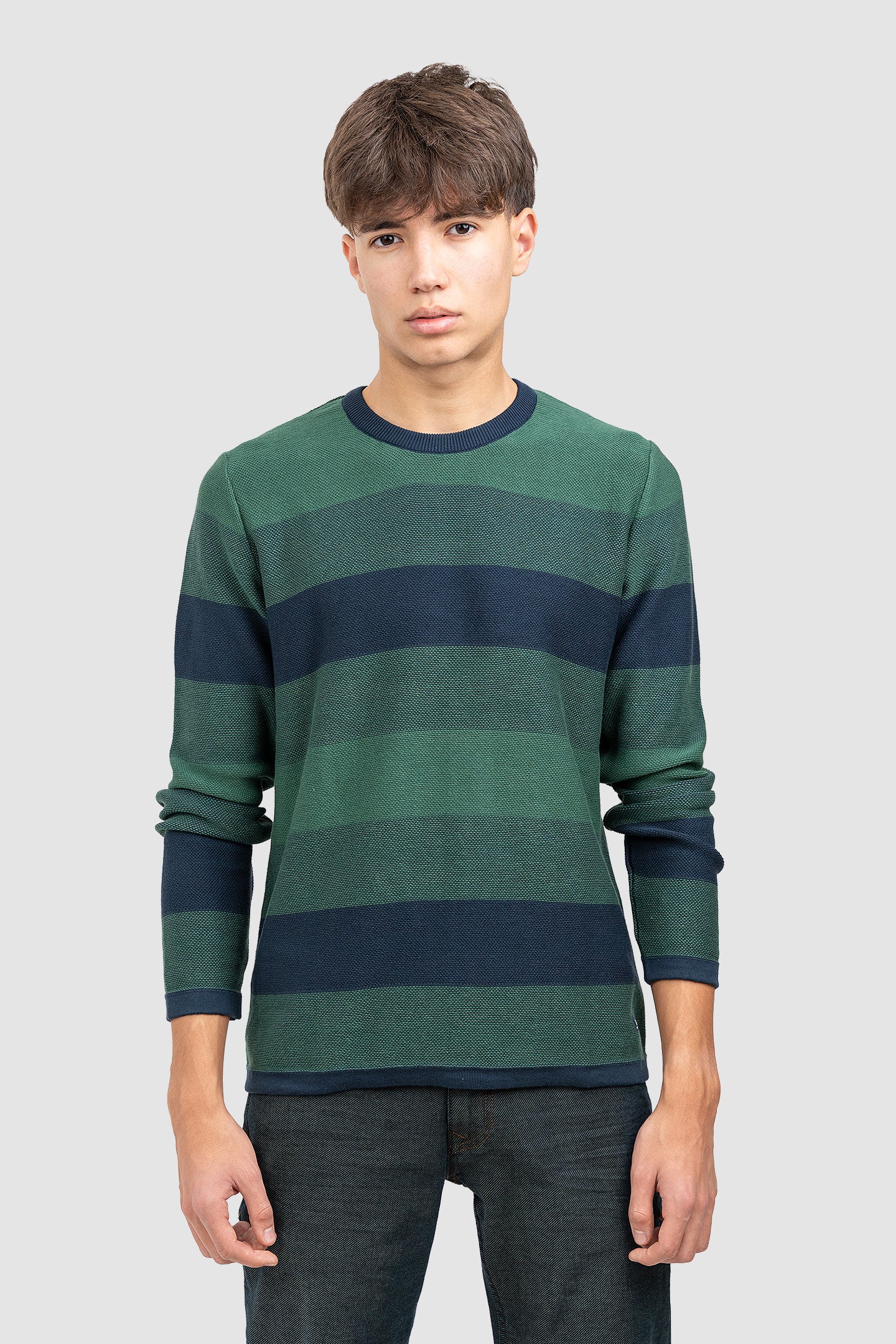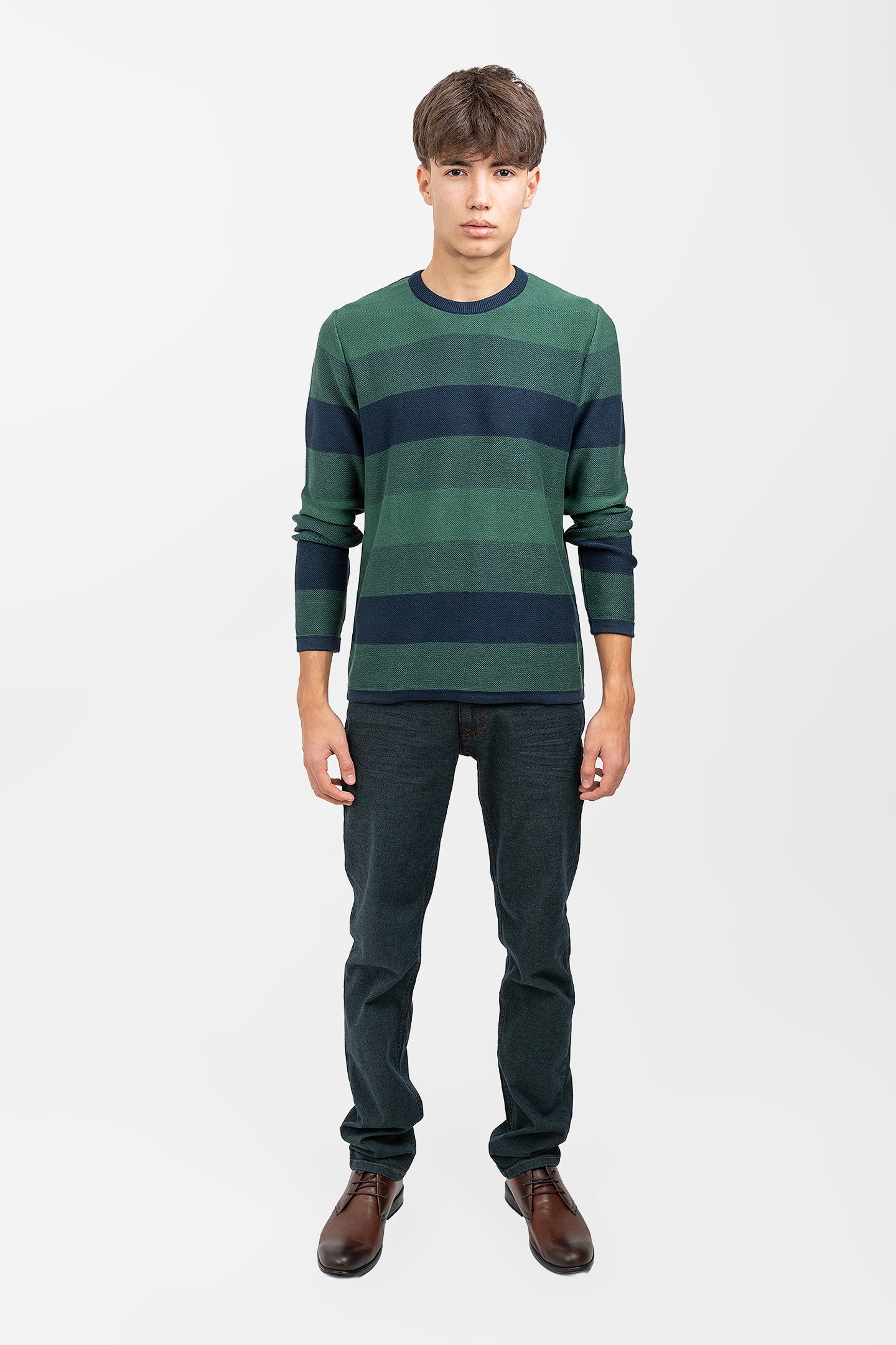 Pulover bărbați din bumbac cu dungi orizontale, verde