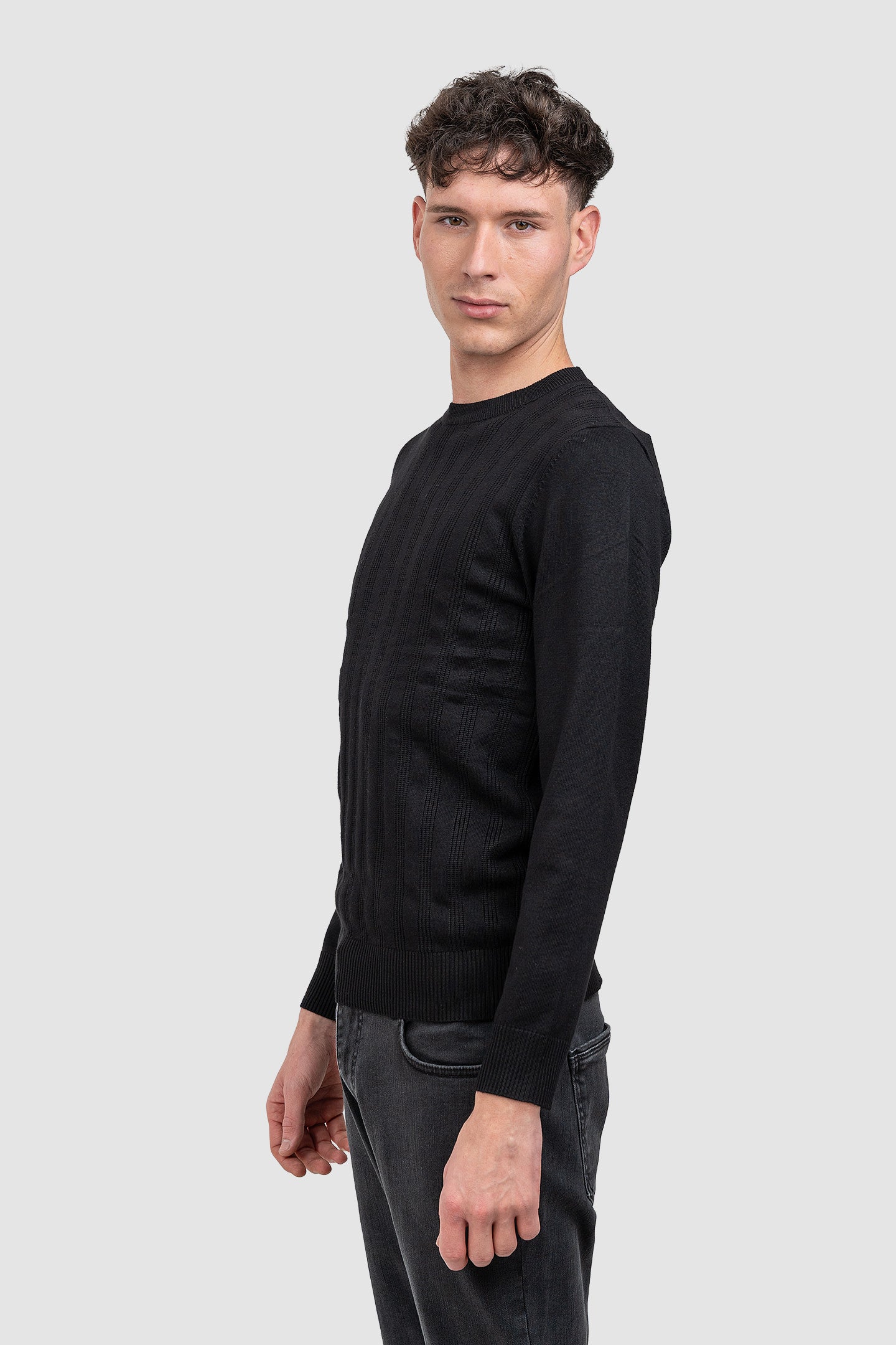 Pulover pentru bărbați realizat din tricot integral din bumbac, cu structură fină și detalii discrete de textură. Designul este conceput pentru purtare zilnică, în contexte casual sau smart-casual, pe durata sezonului rece.
