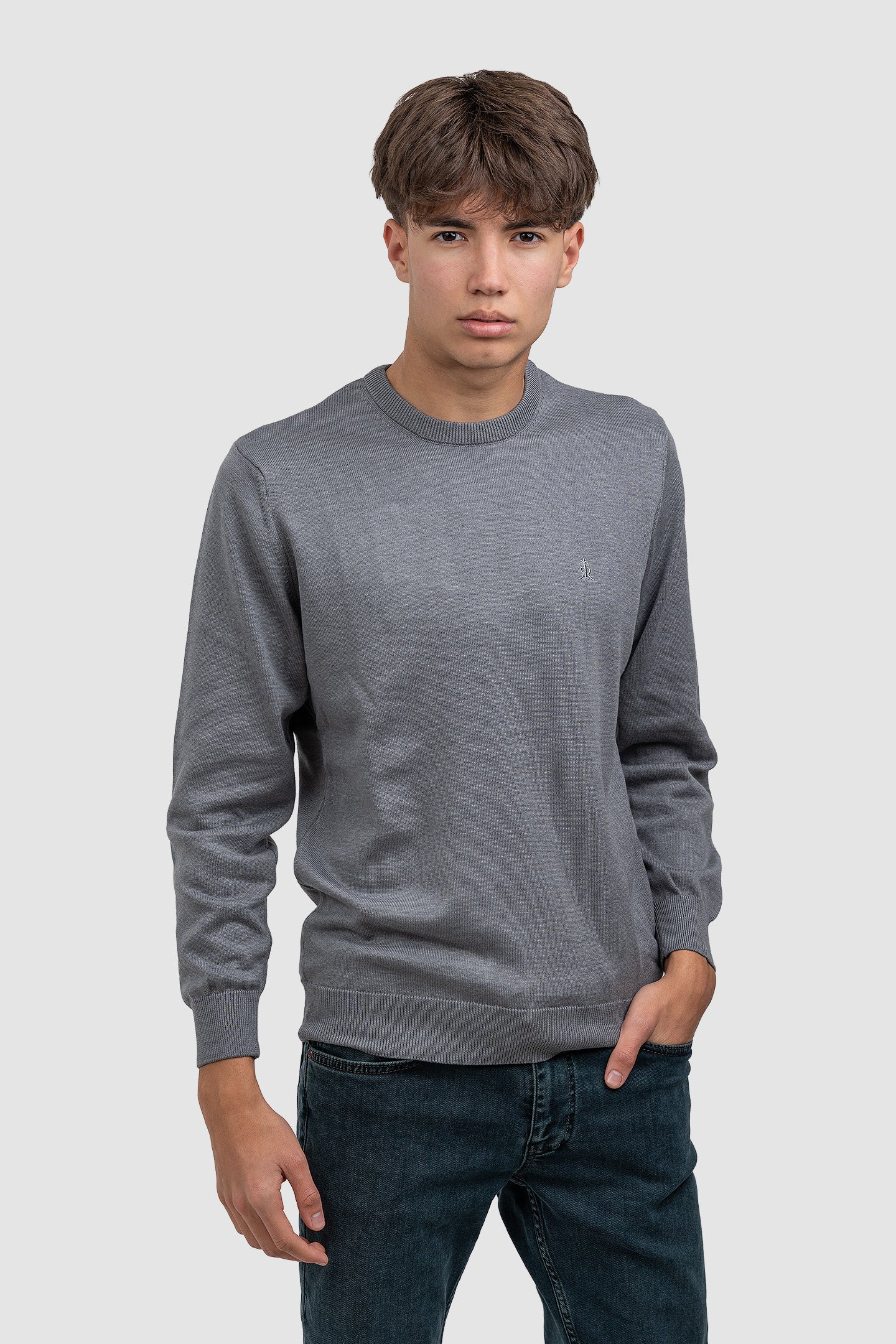 Pulover bărbați cu guler rotund din bumbac mixt, gri