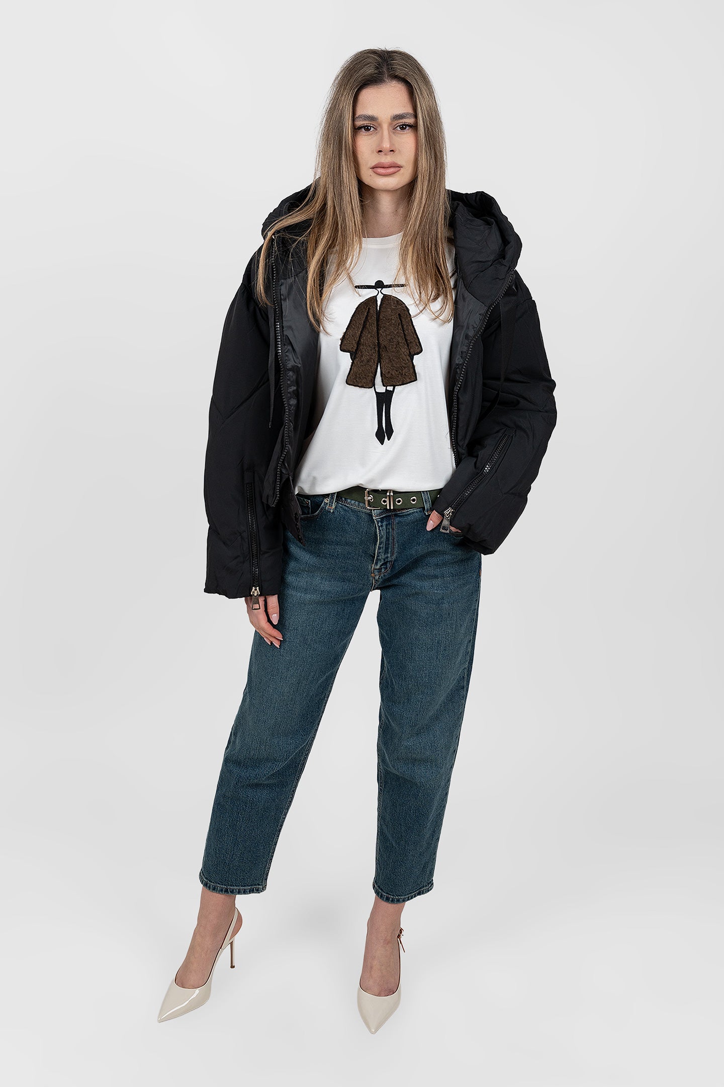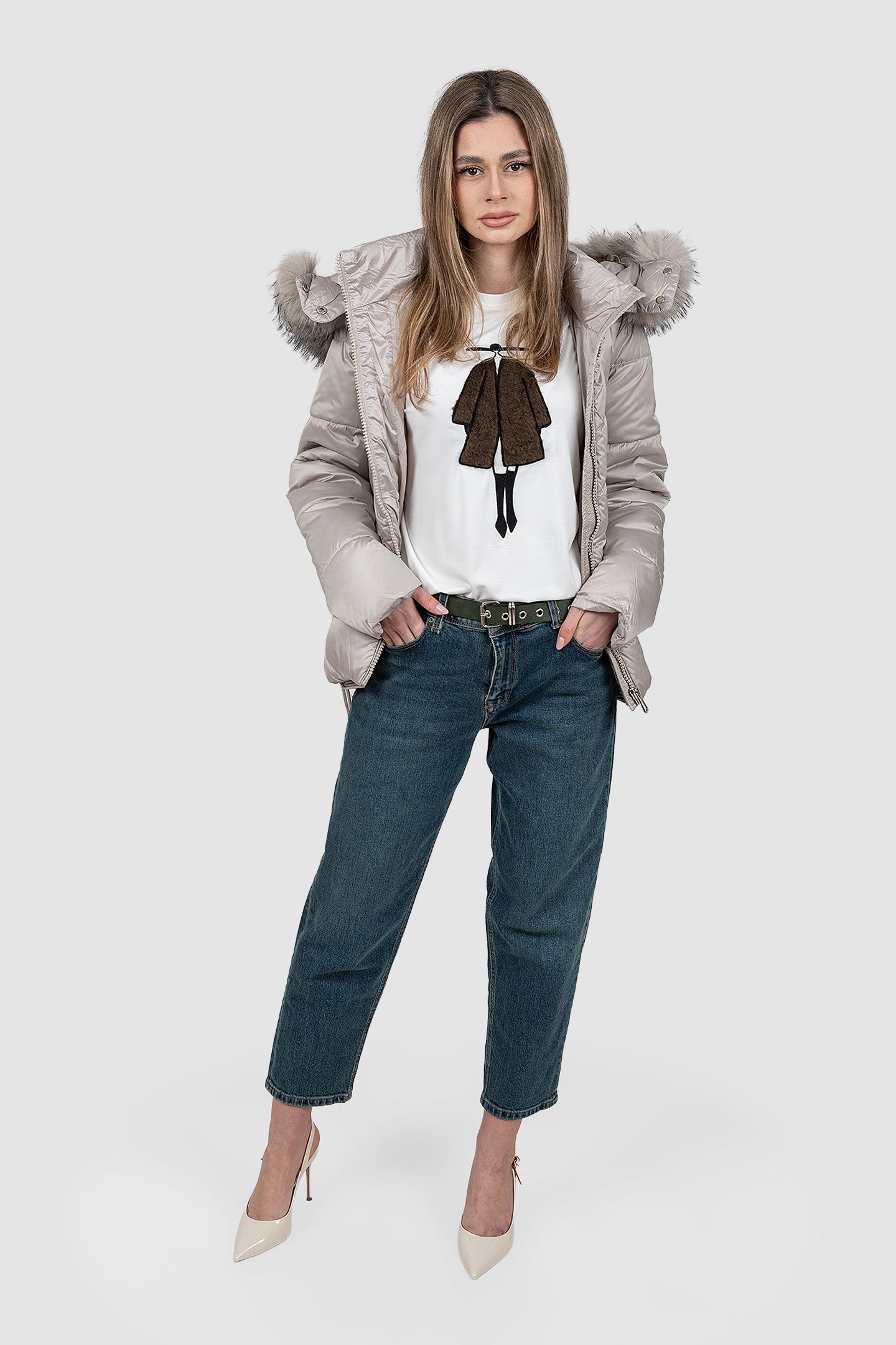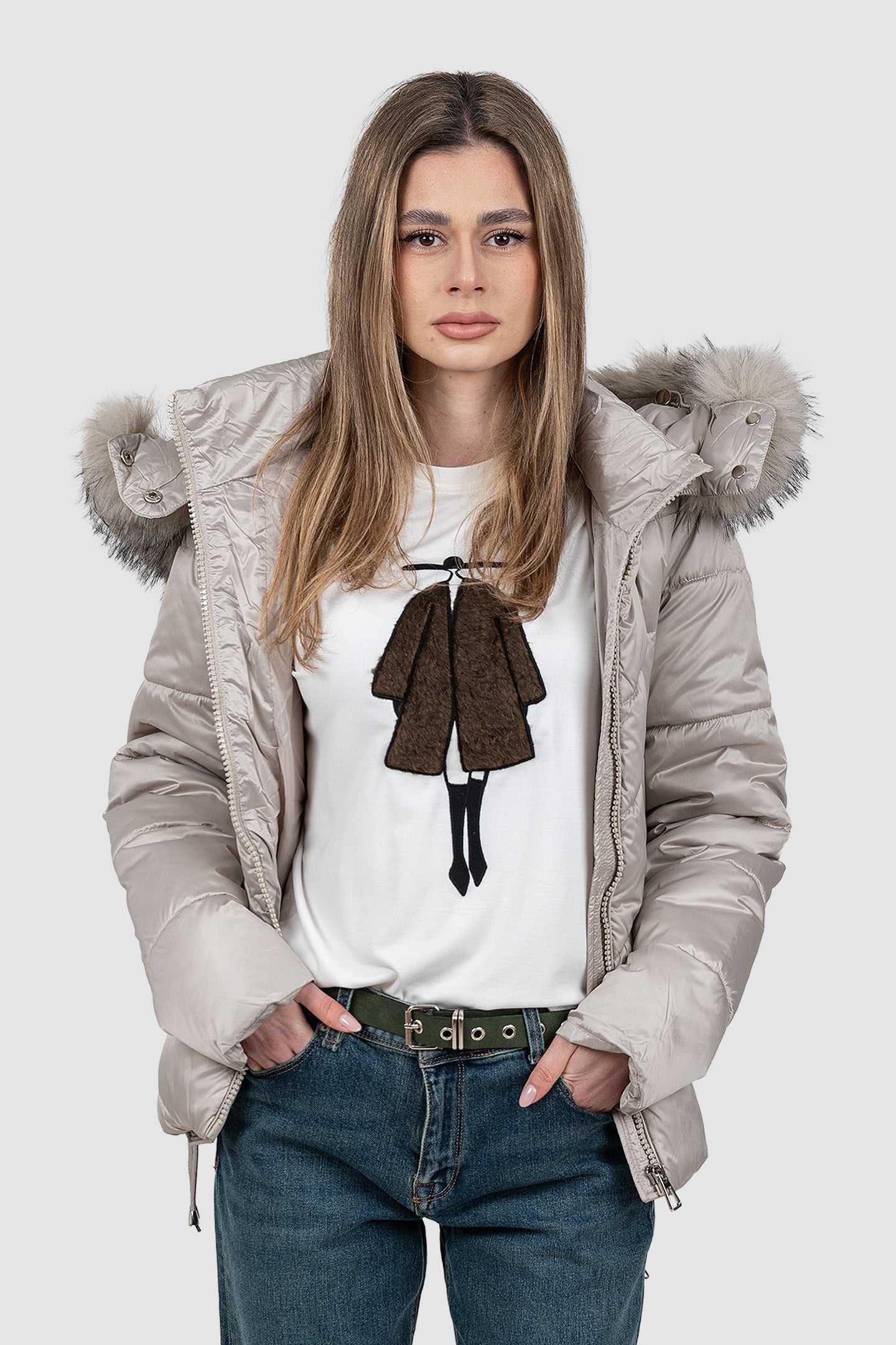 Geacă femei matlasată cu glugă bej