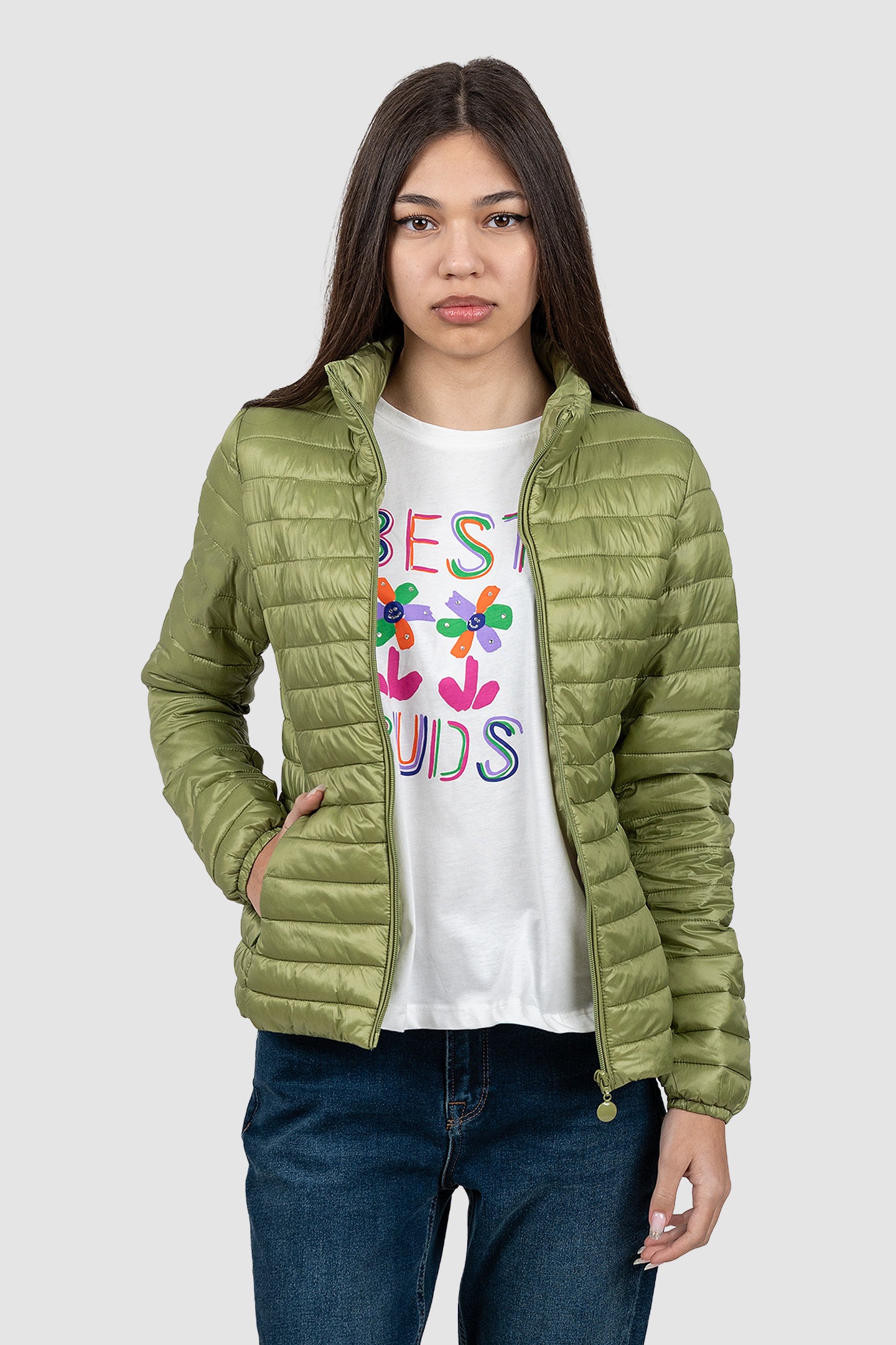 Geacă femei matlasată ușoară fistic