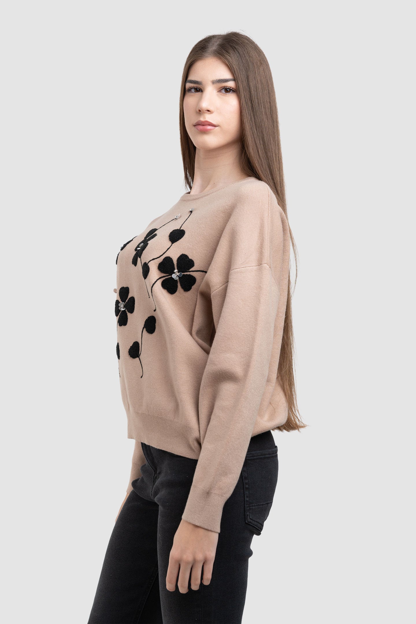 Pulover de damă cu flori aplicate și design modern
