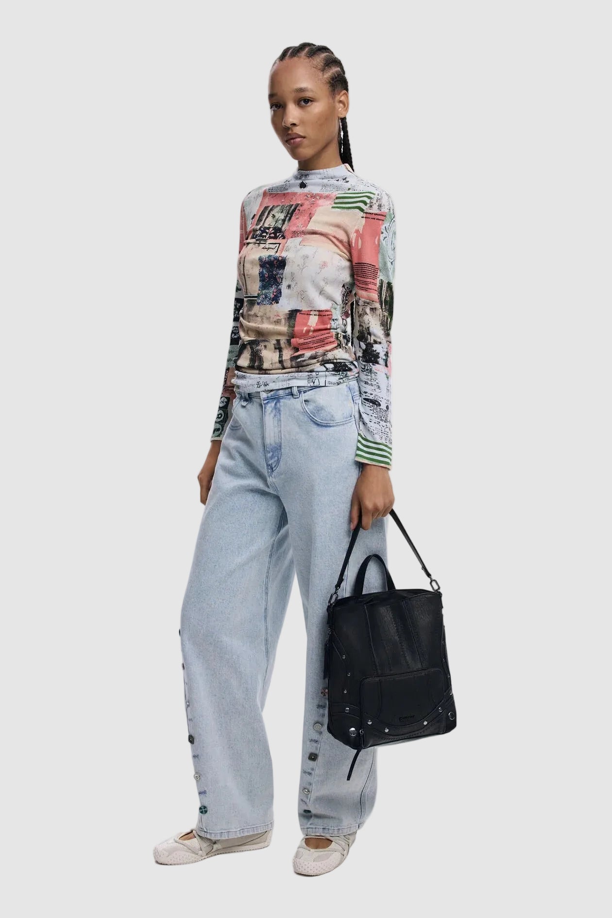 Rucsac damă Desigual din poliuretan cu detalii minimaliste negru