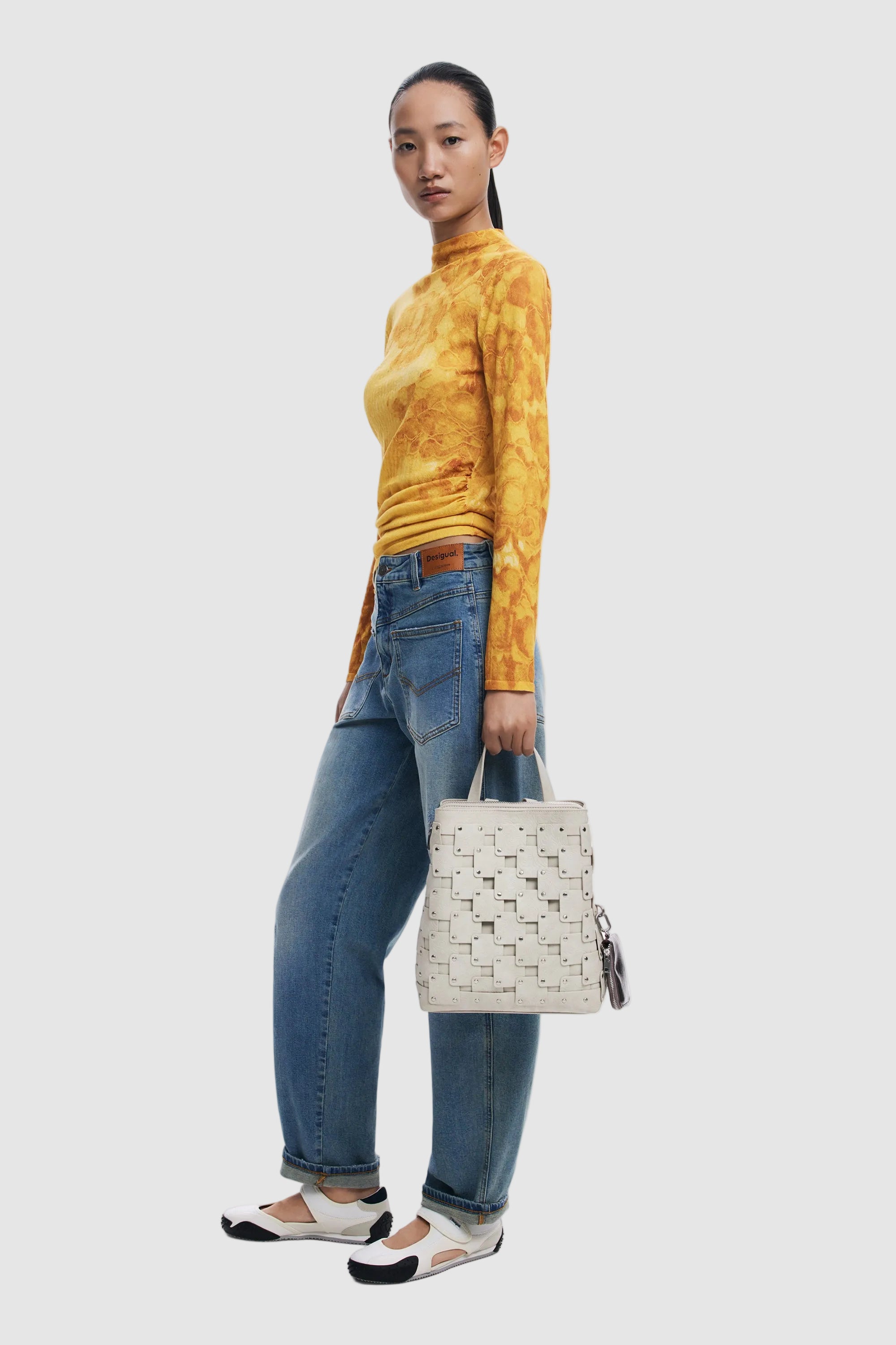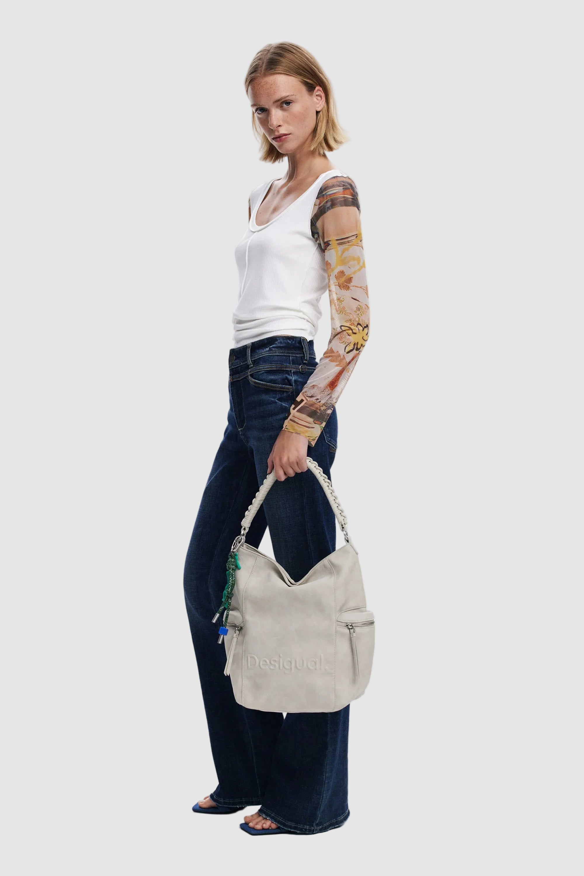 Rucsac damă Desigual structurat din piele ecologică, alb