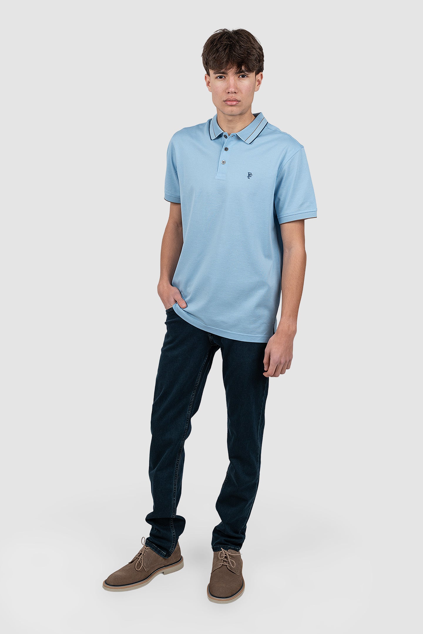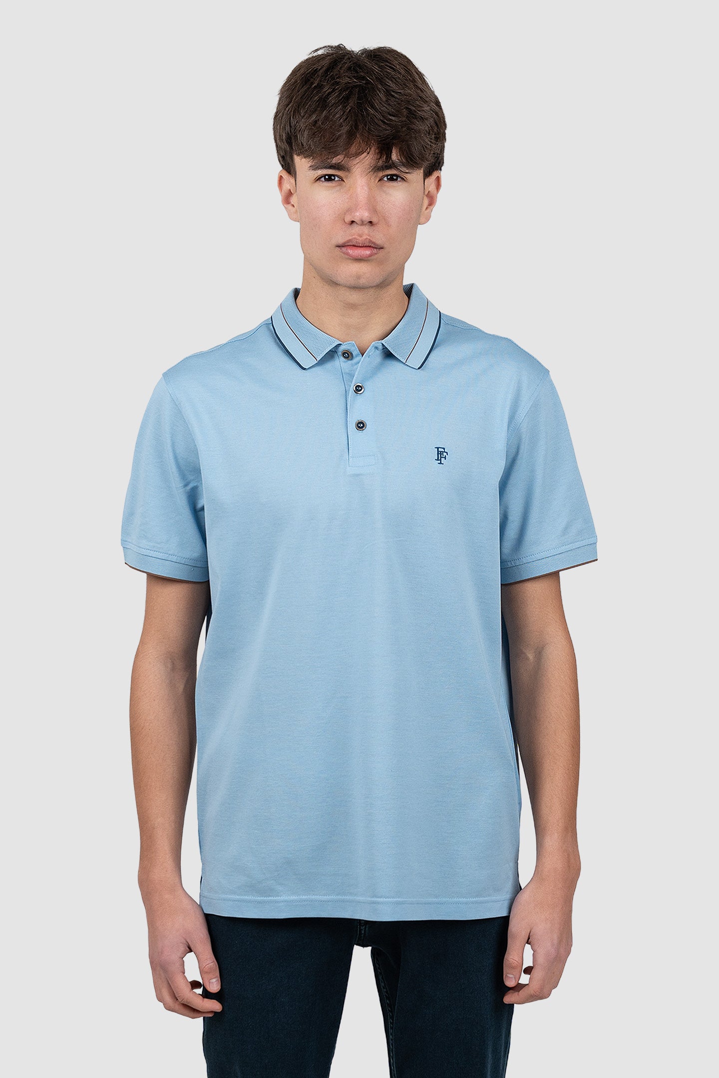 Tricou polo bărbați blue cu guler contrastant