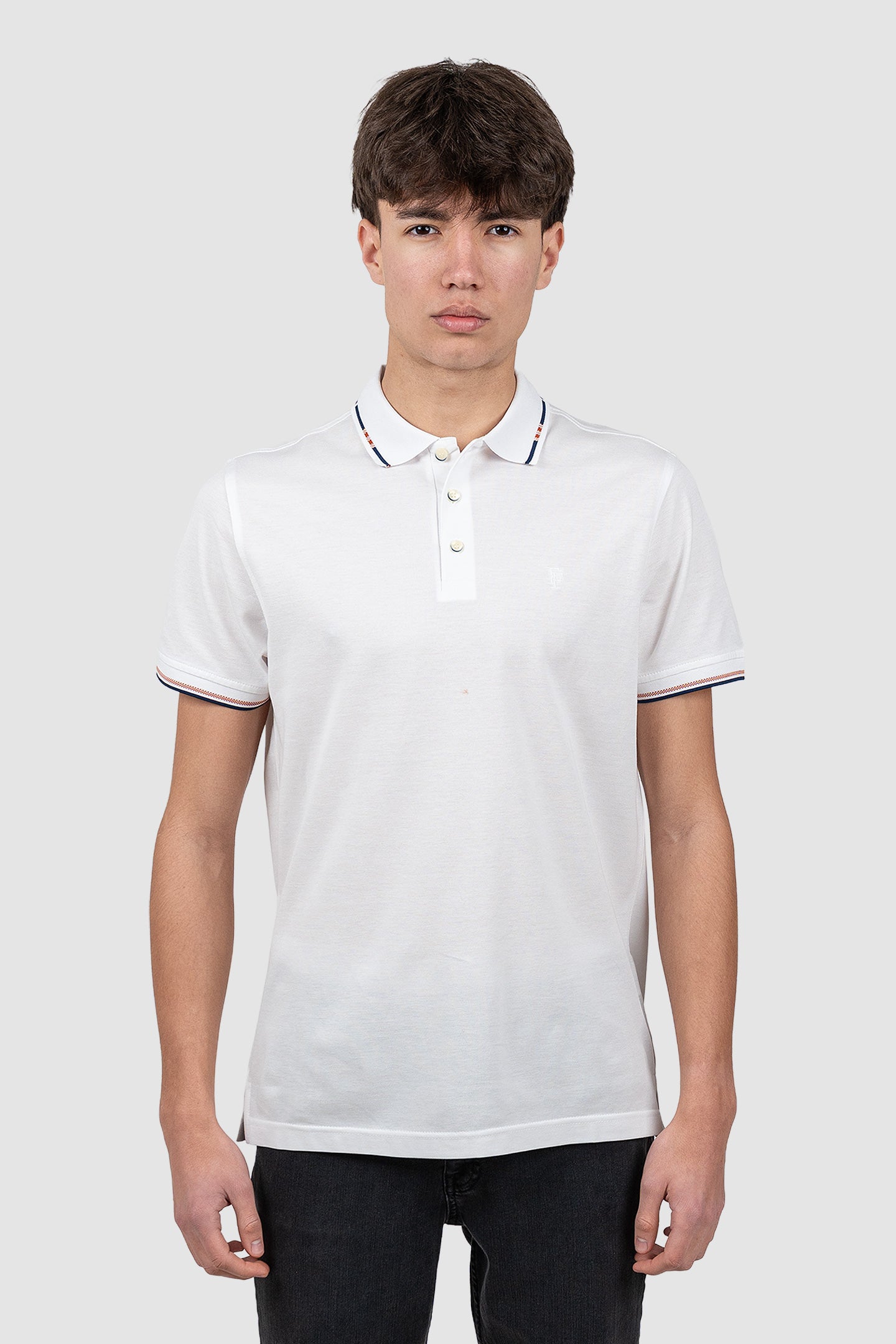 Tricou polo bărbați din bumbac alb cu guler contrast