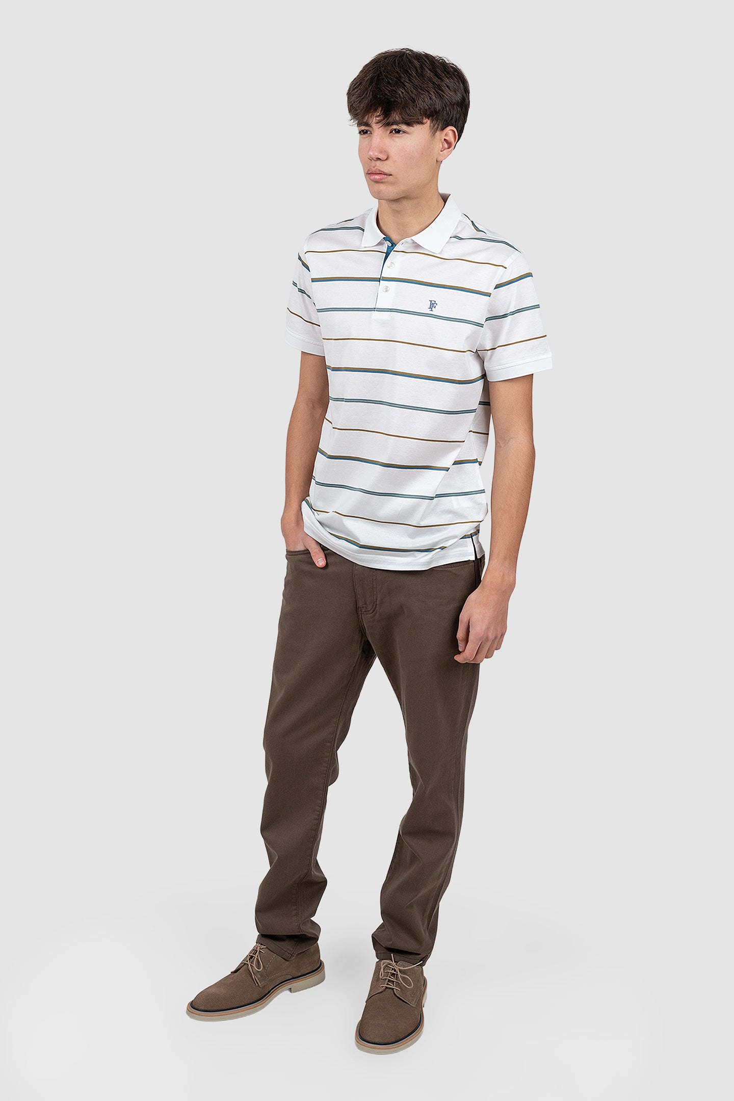 Tricou polo bărbați din bumbac alb cu dungi verzi