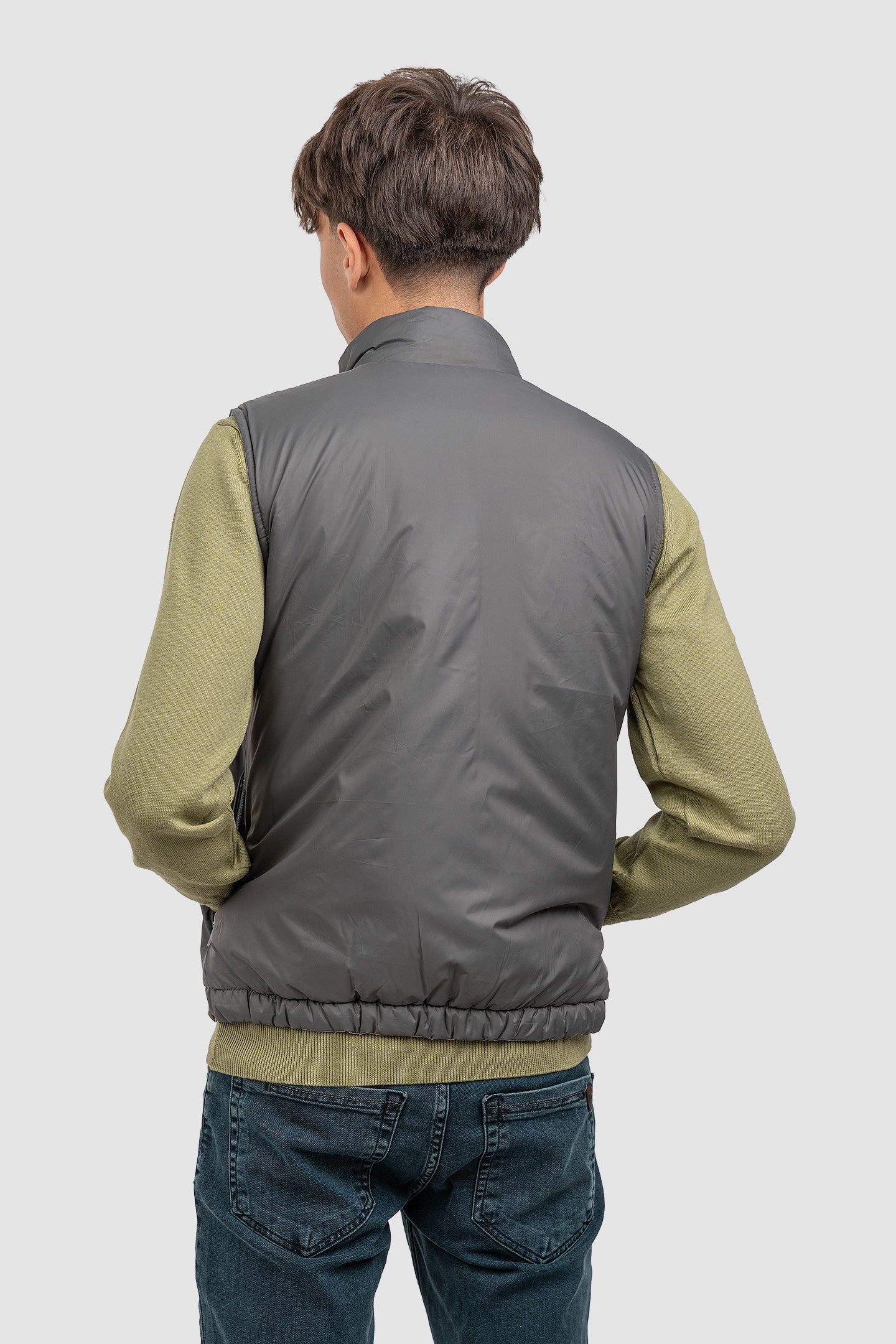 Vestă reversibilă bărbați cu fermoar și guler înalt gri