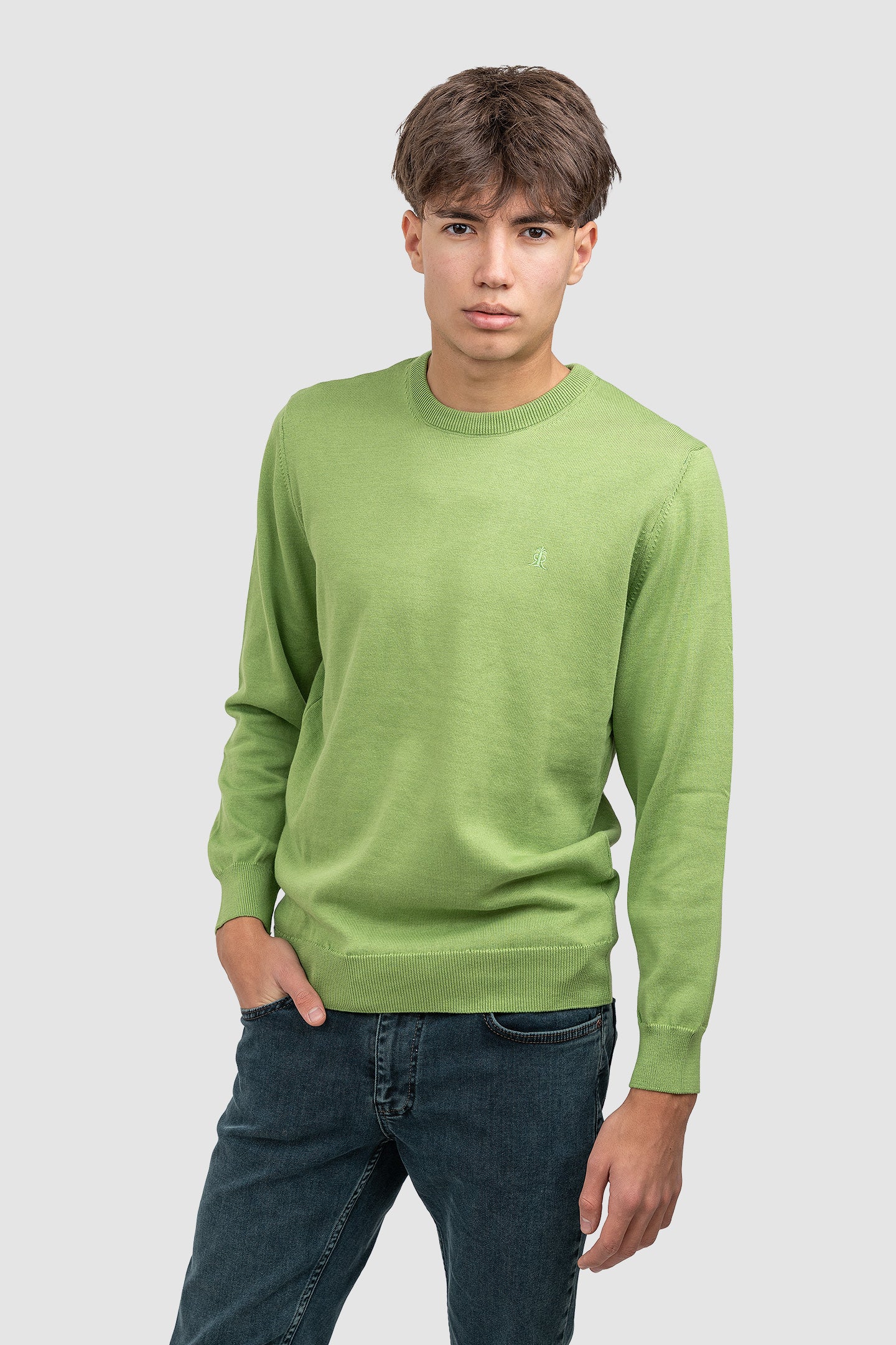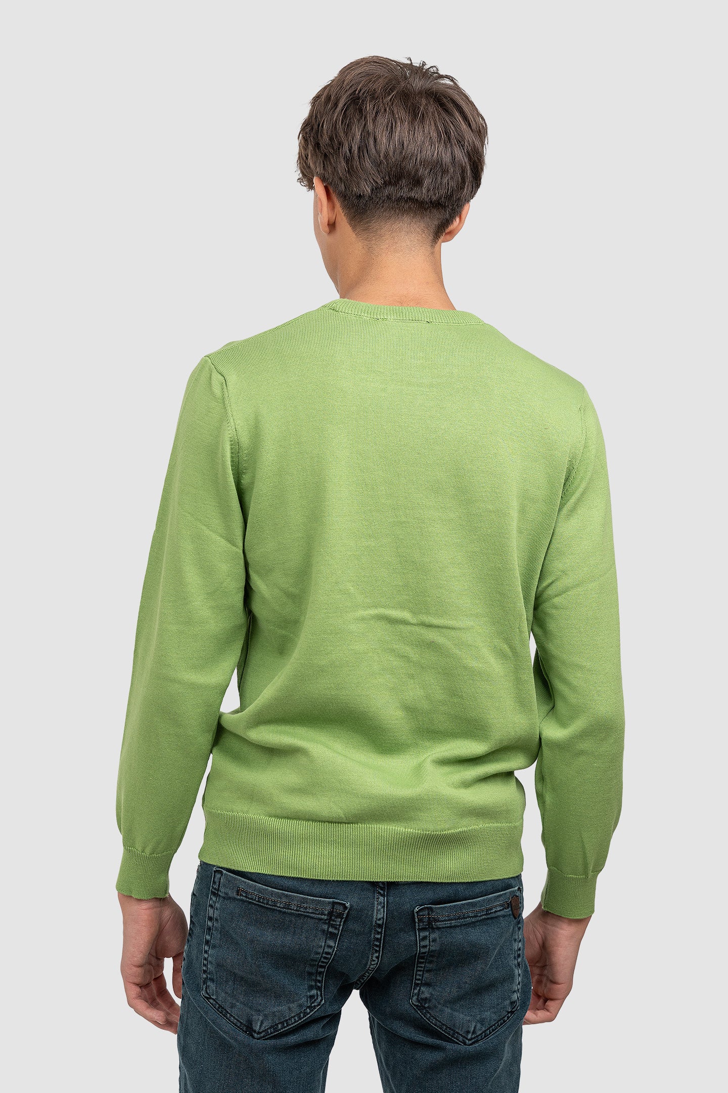 Pulover bărbați din bumbac cu guler rotund, verde